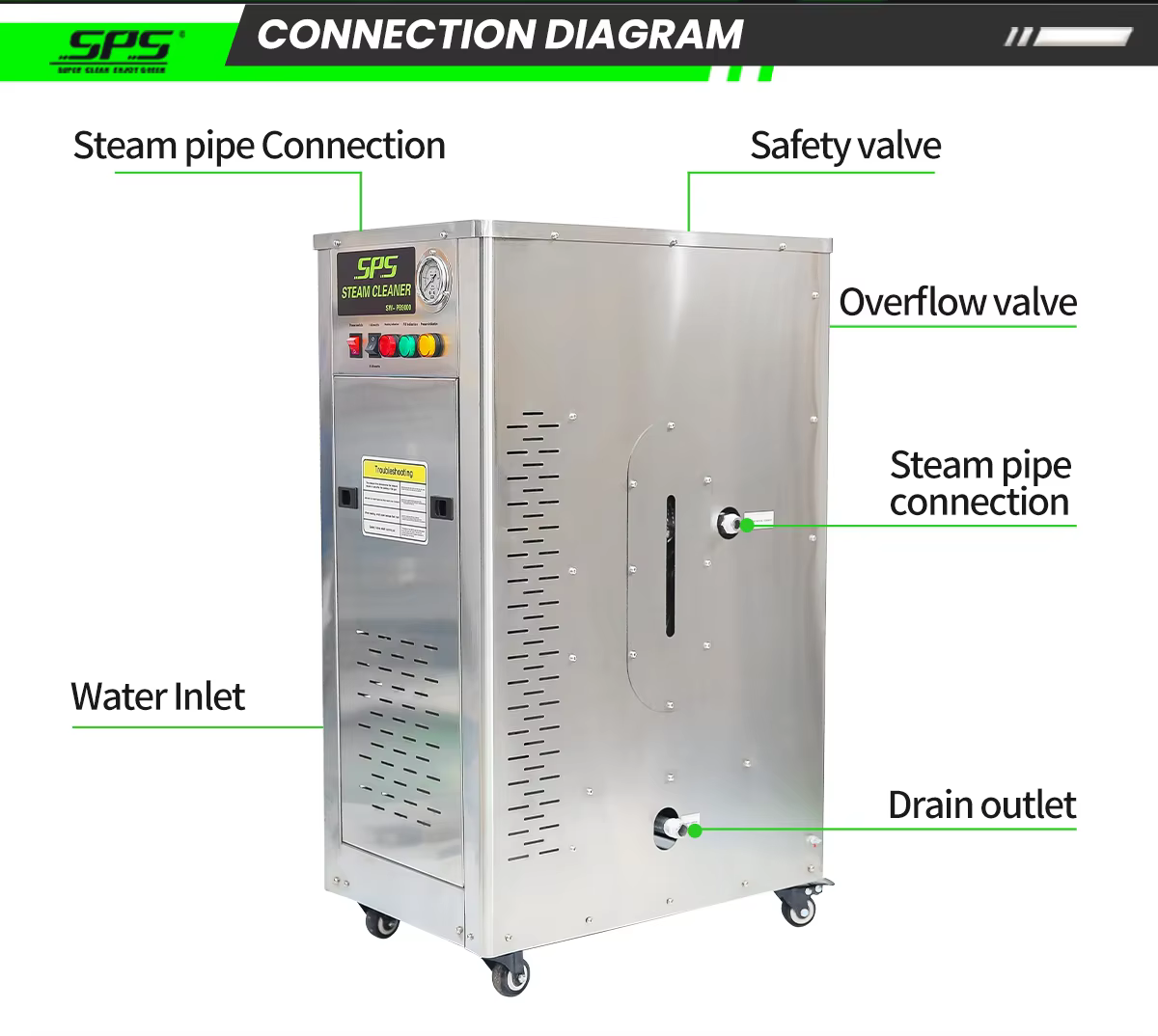 220V Висококачествена парна мивка за коли от неръждаема стомана с топлинен КПД 99% и мощност 9 kW за почистване на автомобили