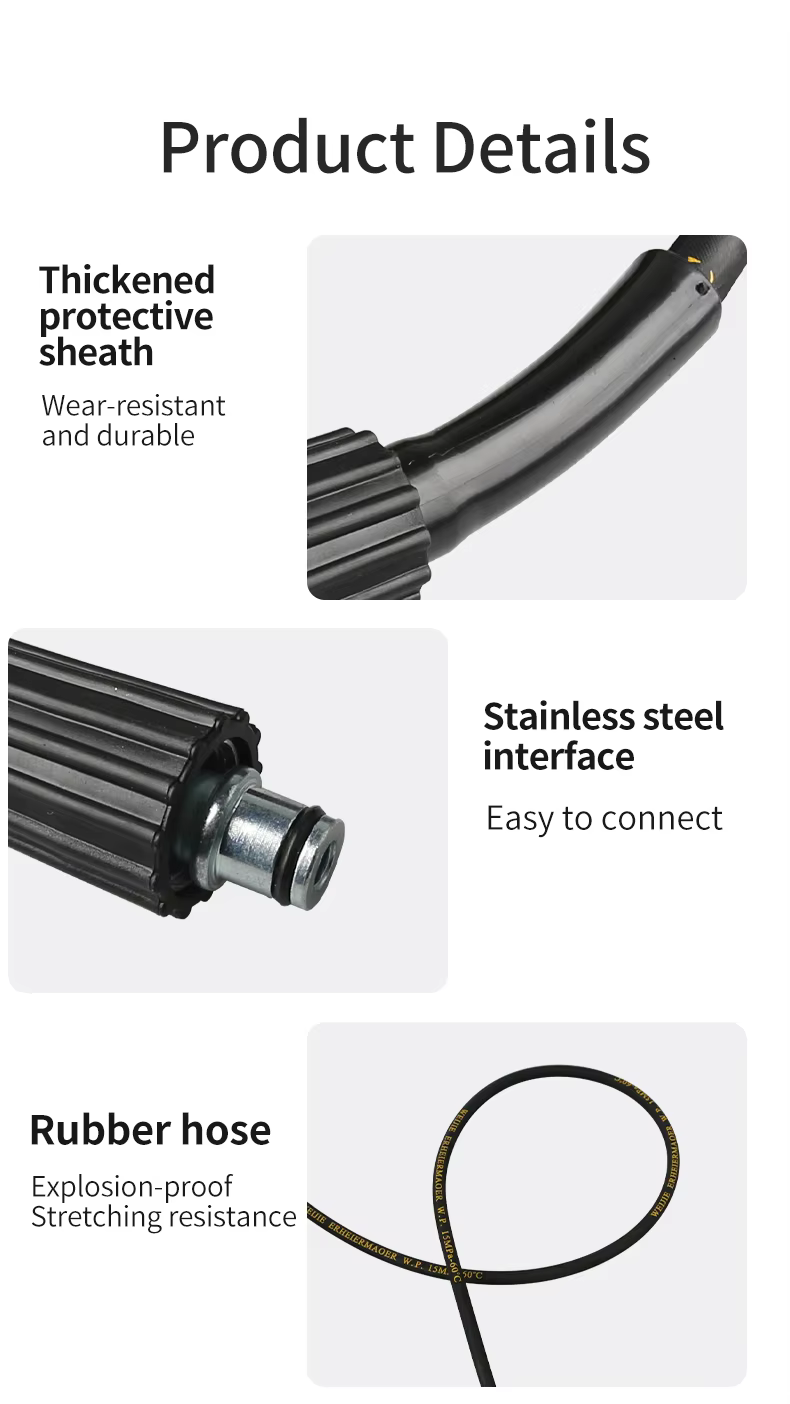 SPS 50 фута 15 MPA M22-14 Високонапорен шланг за почистване Шланг за миене на коли от стоманена жица Високонапорен перален апарат Гумен шланг за грижи за автомобила