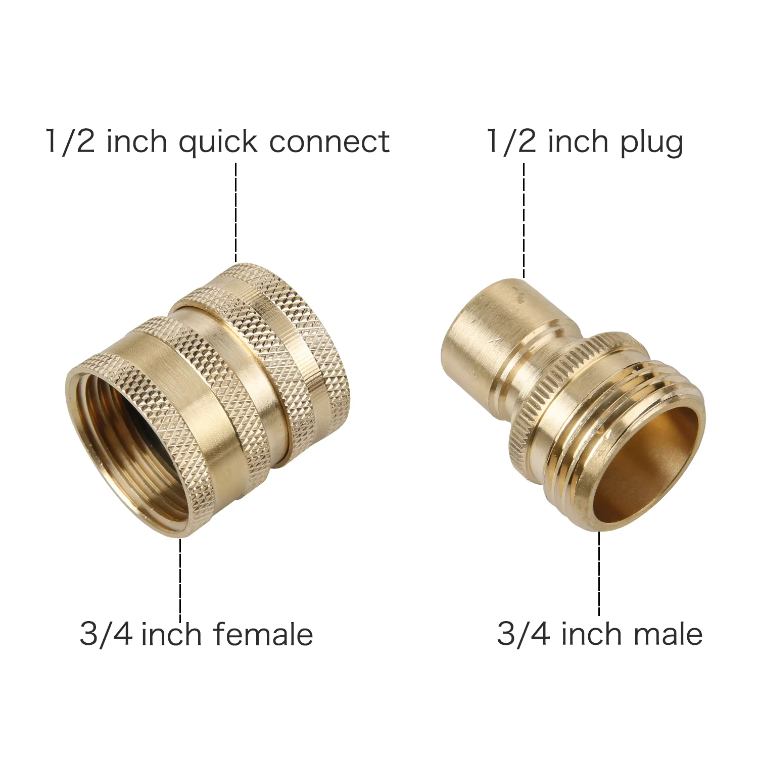 Dva závěrečné rychlospojky 3/8" M22 14 (NE 15 mm), dva mužské rychlospojky 3/8" M22 a dvě sady rychlospojek pro zahradní hadici s závitem 3/4". Umožňuje snadnější a rychlejší použití
