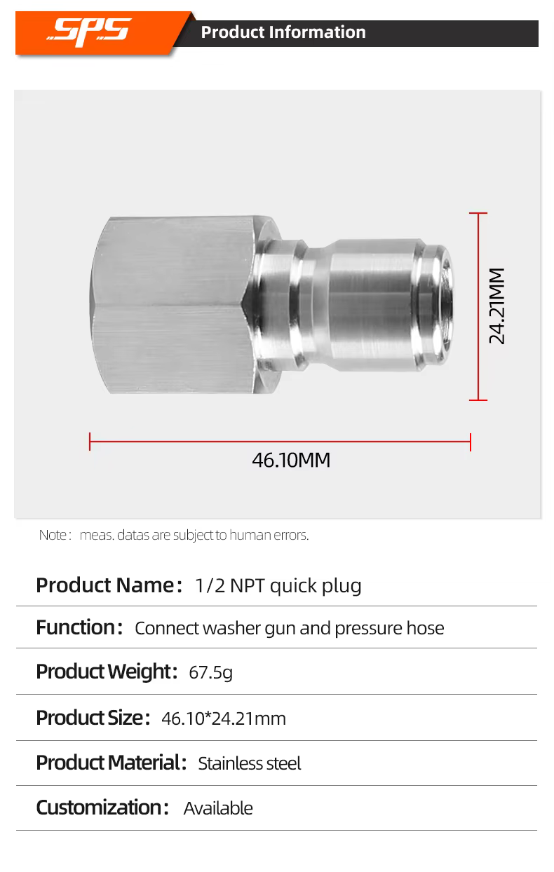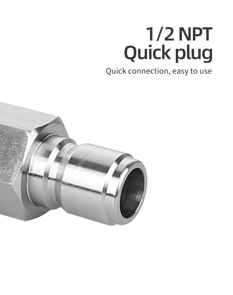 SPS 1/2 tomme NPT hurtigstik, hunkobling i rustfrit stål, hurtigkoblingsadapter til trykspüler, hurtigkobler