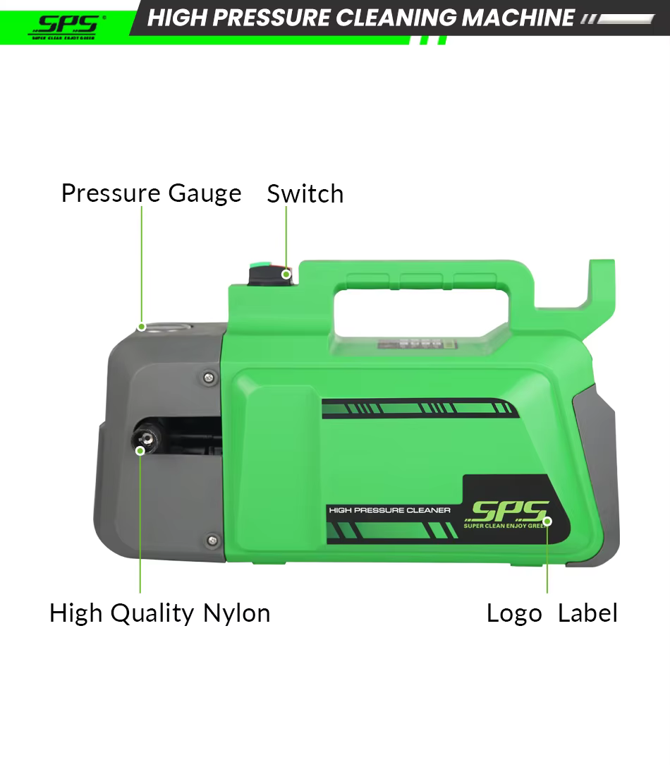 SPS Kvalitet Portabel El Højtryks Vaskemaskine Rent Kopper Induktions Automatisk Motor 1800W Husstand Overflade Renser 8L / Min 160Bar Til Rengøring Af Biler Afgangsveje Hegn Pations Have