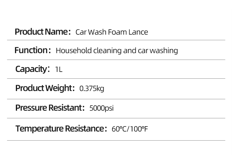 SPS 5000PSI 1L Hochdruck Schaumkanone Autoflächenreinigung Verstellbarer Schneeschäumlöffel