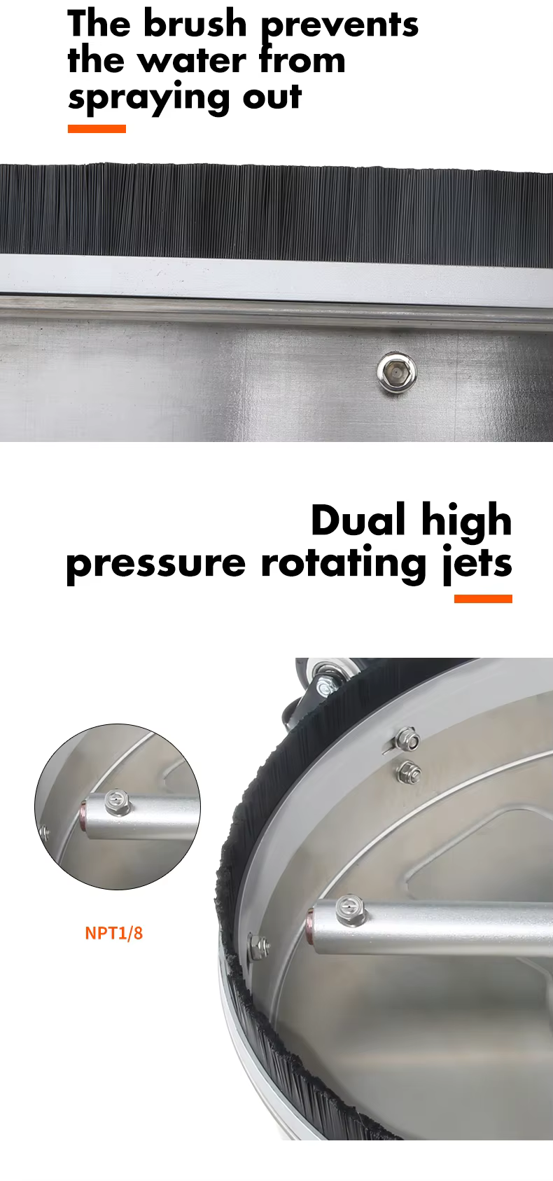18 tuuman korkeapainepesurin pintapesuri, rostumatonta terästä, pyörivä litteä pintapesuri