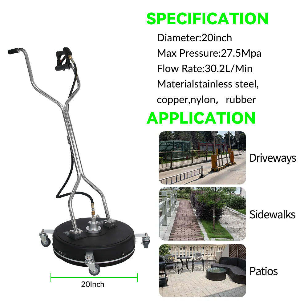 20 tuuman 4000 psi:n kääntyvä käsikäyttöinen korkeapainepesuri, pyörivä litteä muovipintaiskuri levy pesurille betonin puhdistamiseen