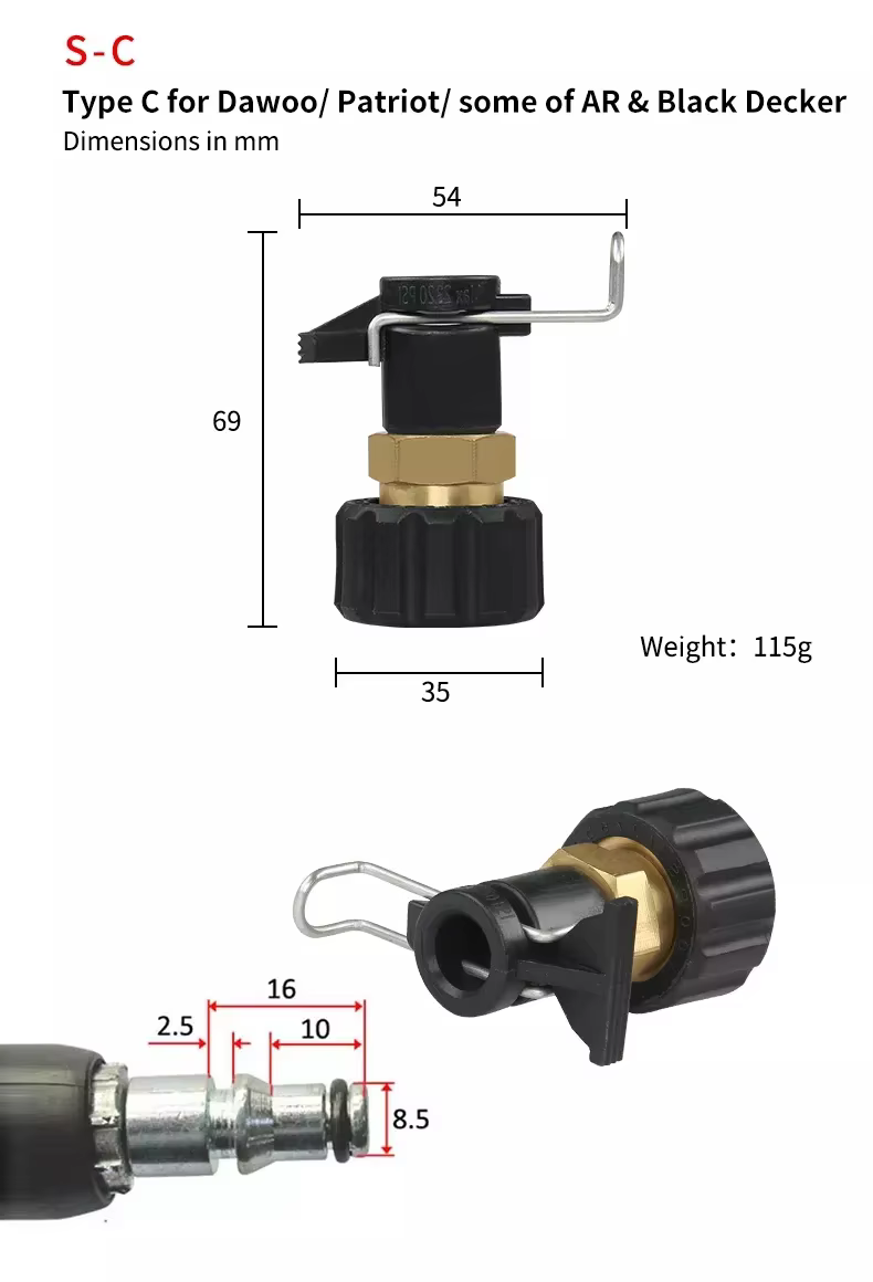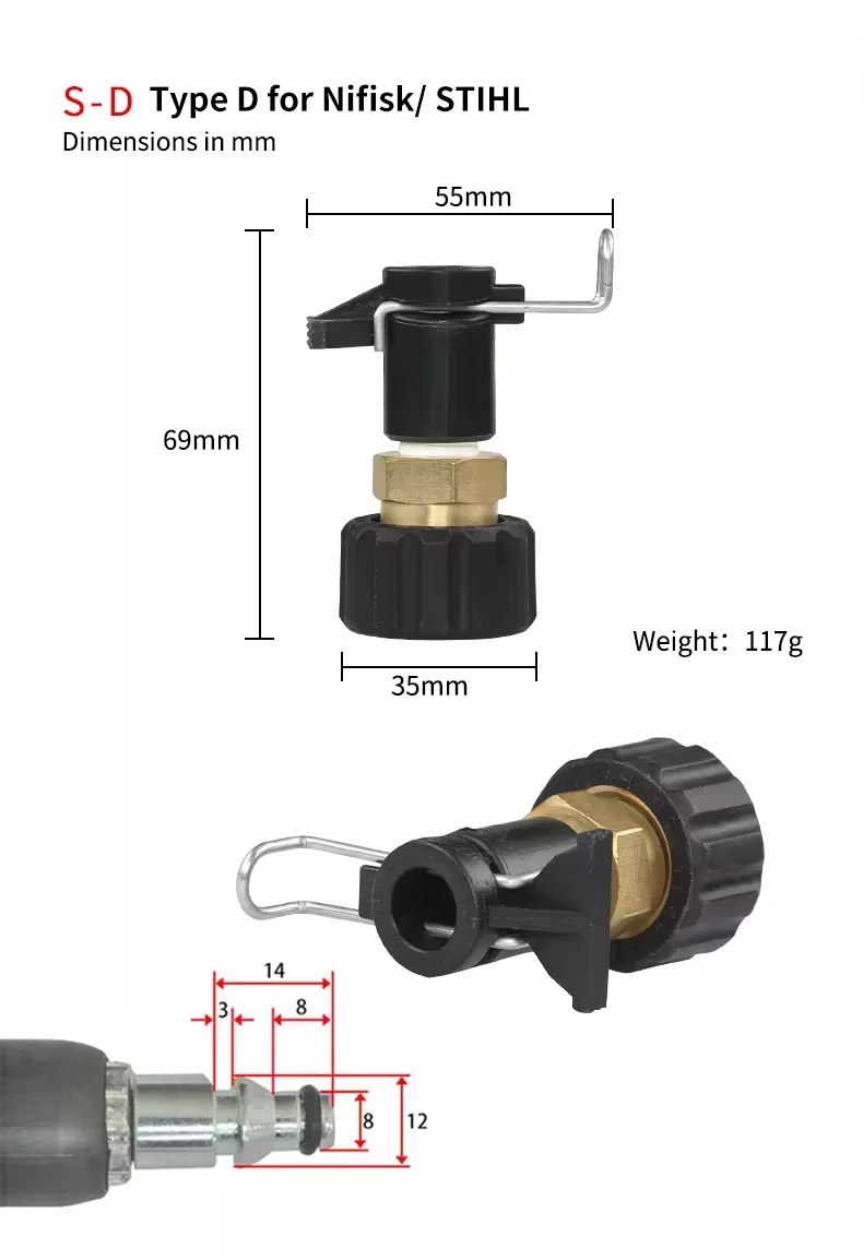 SPS High Pressure Foam Gun Adapter ga Bosch Karche Series ga Nawayin Wuya na Ita ce da Haɓakke na Hose mai Tuma