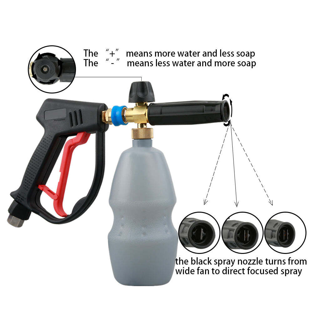 ★Fitur meriam busa: - Nozzle semprotan yang dapat disesuaikan untuk pencampuran dan pembuatan busa yang akurat - Sesuaikan nozzle untuk mendapatkan pola semprotan yang tepat (dari lebar ke sempit) - Putar kenop di bagian atas untuk mengatur jumlah air yang dicampurkan. -Botol 1L