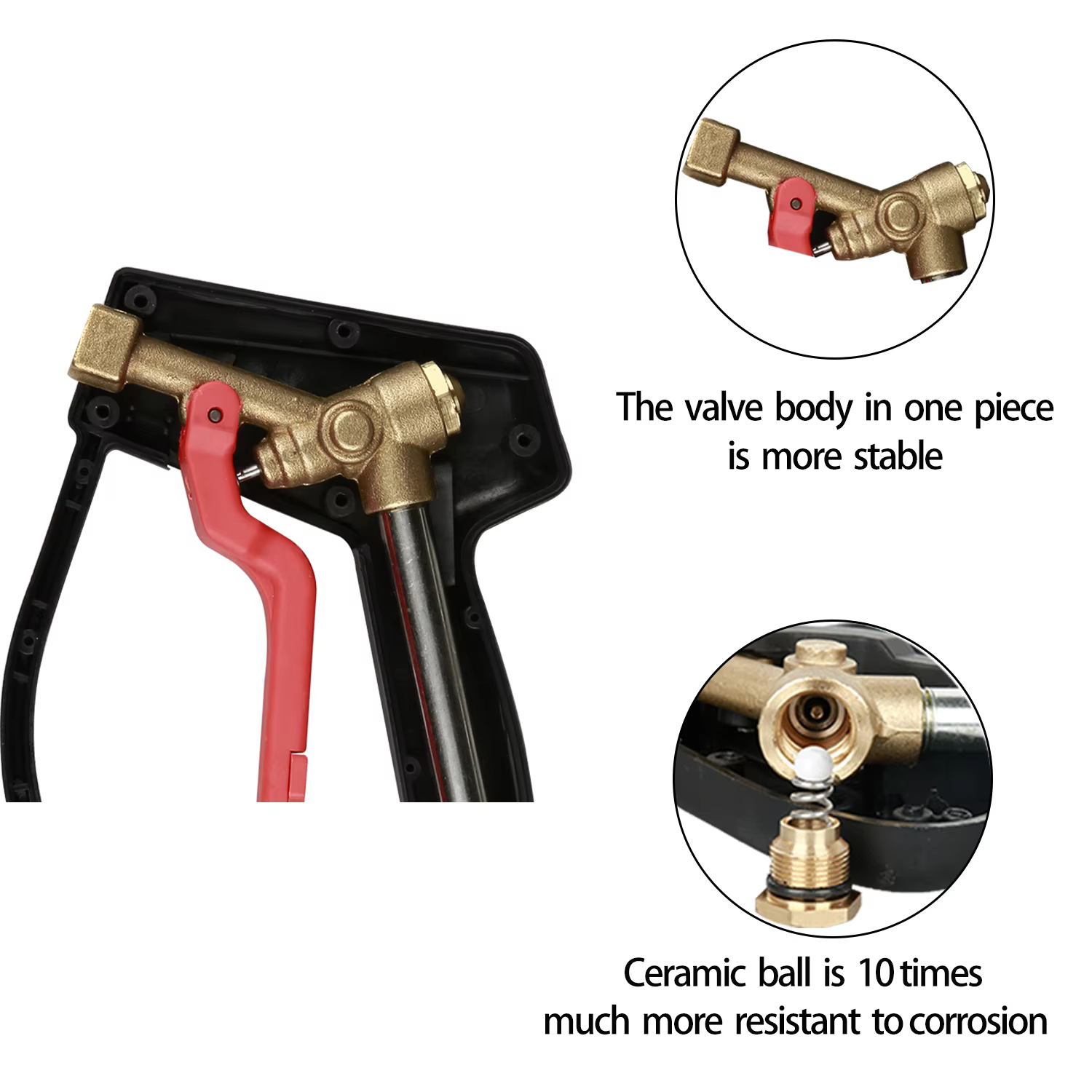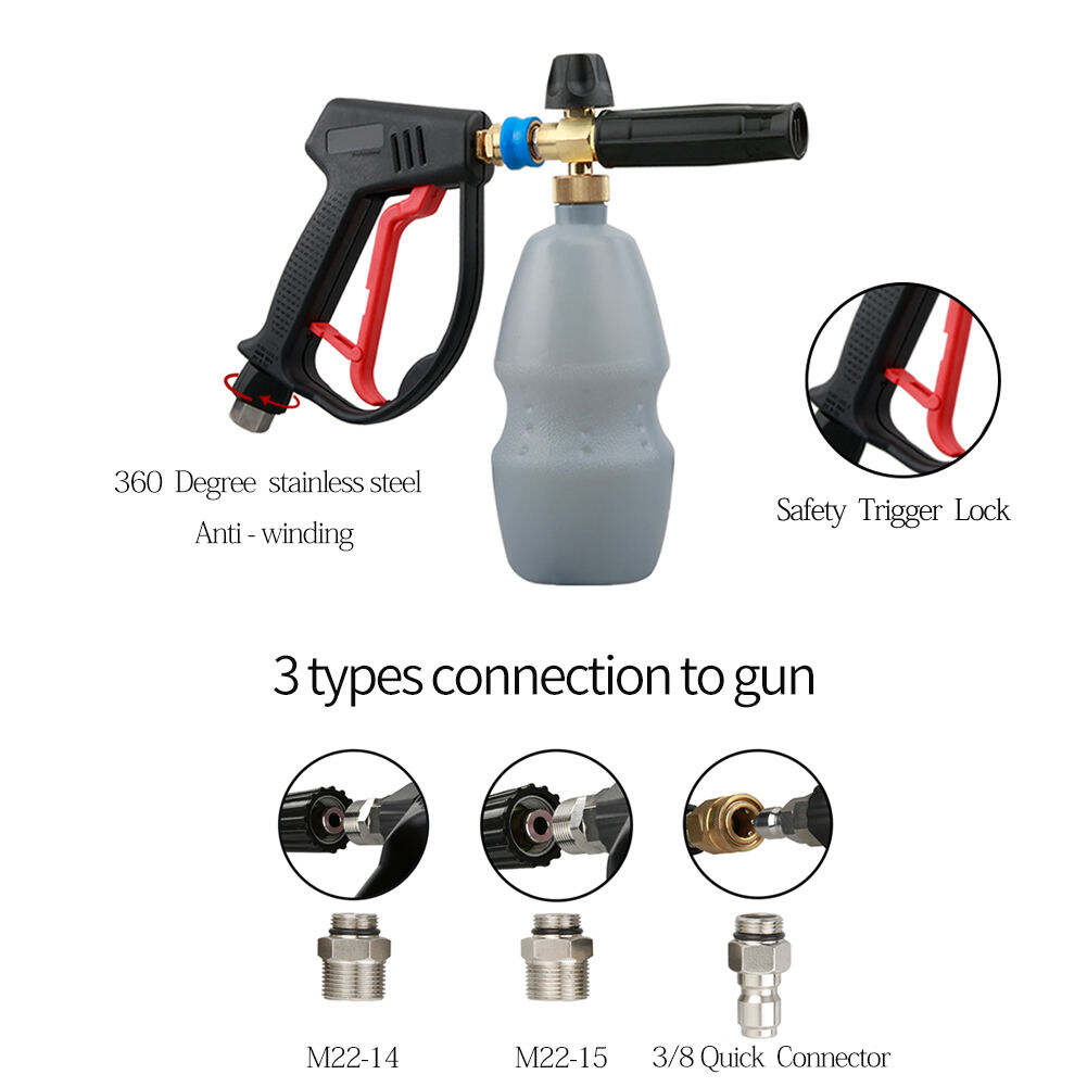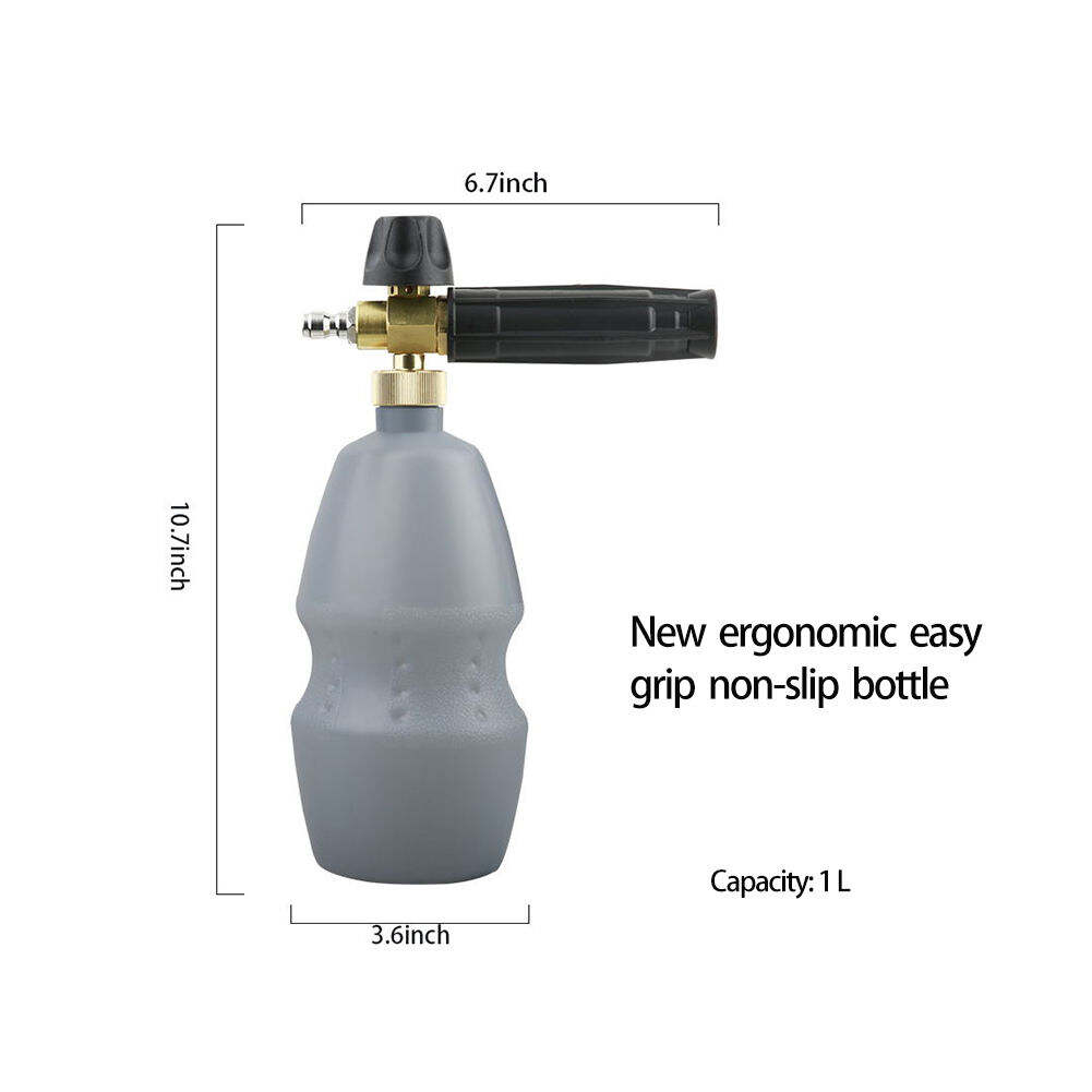 Desain yang ditingkatkan dari meriam busa membuat semprotan busa lebih baik dan stabil, tidak tersumbat, dan tidak bocor. Desain botol ergonomis baru dengan permukaan anti-slip. Kapasitas: 0,22 Galon (1L)