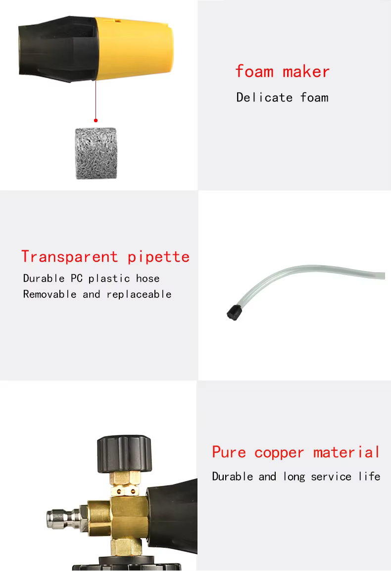 【Desain Unggul】 Terbuat dari bahan berkualitas tinggi, tahan tekanan dan tahan suhu. 【Tips Penggunaan】 1. Isi botol dengan air panas/hangat sebelum menambahkan sabun. Ini akan membantu Anda mencampur busa dengan lebih baik. 2. Putar kenop di bagian atas untuk mengatur jumlah air yang dicampur. “+” menunjukkan lebih banyak air dan sedikit busa, “-”menunjukkan lebih sedikit air dan lebih banyak busa 3. Konsumsi pembersih busa salju dapat diatur, pola semprot sudut variabel dari pensil hingga kipas 60°. perhatian 1. Harap periksa ukuran adaptor dan pastikan sesuai dengan mesin Anda. Jika tidak jelas, silakan hubungi kami, kami akan membantu memilih adaptor yang sesuai. 2. Antarmuka standar adalah colokan cepat 1/4 inci. Jika pembeli membutuhkan beberapa antarmuka, antarmuka tersebut harus dibeli secara terpisah. 3. Warna nozzle yang dapat disesuaikan secara standar adalah hitam dan kuning. Jika pembeli membutuhkan warna lain, silakan hubungi kami.