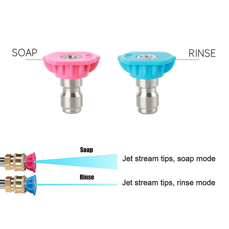 2 farartæki vélbúnaðaroddar fyrir langdrægan hreinsun. Vatnsdysa ná auðveldlega til erfiða áðila eins og annan hæling. Sápu-dysa gefur af sér sápu með lengri ræktun, hugmyndin er að hreinsa yfir höfuðsvæði.