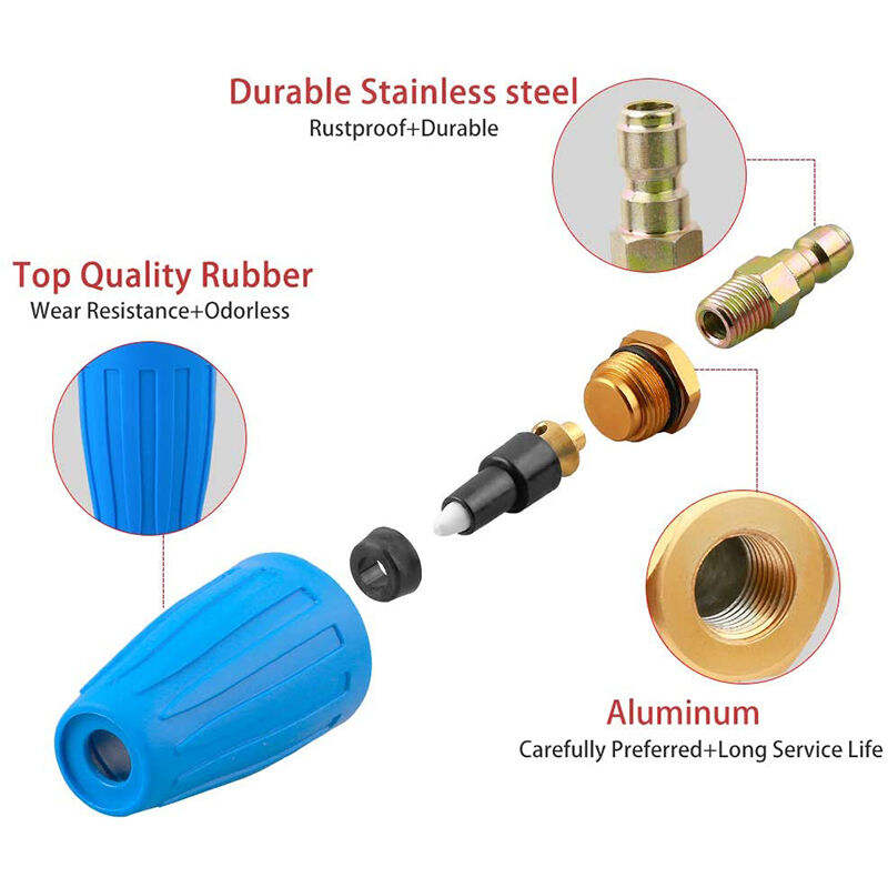 ☆ Snýst á háum hraða til að auka bæði álag og hreinsunarflatarmál spray. Auknar þrýstingshreinsunartækis hreinsunarvirkni Turbo blysandi virkni. ☆Býr til öfluga straum af sveiflandi vatni. Snúnandi vatn bætir við auknum rjufunaraðferð í hreinsunarferlinu. ☆Hraðtengingar sprauta með súrefni hreinsar allt að 40% hraðar en venjulegar sprautur.