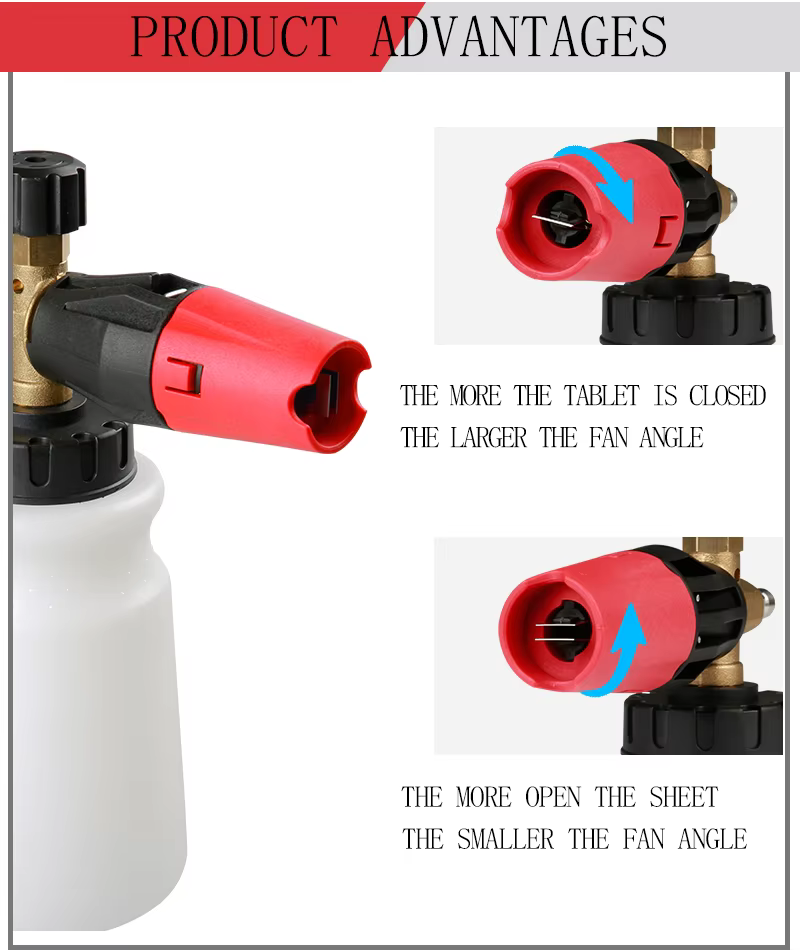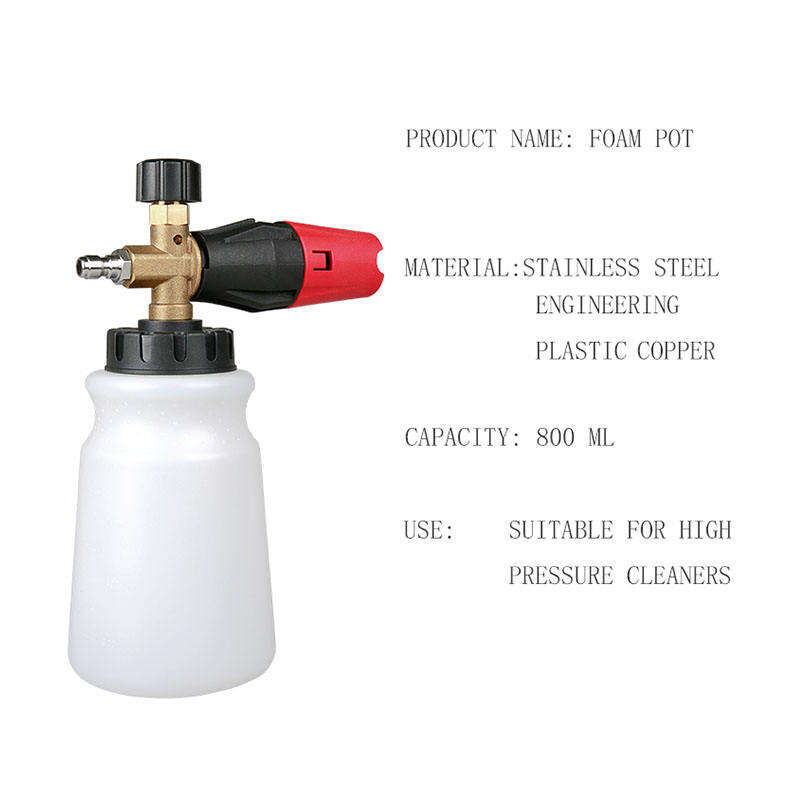 【Frábær hönnun】 1. Nýtt gert með ljósri snjóskýrakönnu. Þú sérð skýrað betur inni í kunnunni. 2. Hún er gerð úr efri gæðaeftirlitnum efnum, þrýstingsheld og hitaeftirlit. 【Notkunartips】 1. Fyllið flöskuna með heitu/veislu vatni áður en því er bætt í sápu. Þetta hjálpar betri blöndun skýggisins. 2. Stilltið hnútanum efst til að stjórna magni vatns sem blandað er inn. “+”vísar á meira vatn og minna skjúr, “-”vísar á minna vatn og meira skjúr 3. Regluleg notkun skjúrsýrustofns, breytileg spray-mynd frá blekkjapenni að 60° ventil. 【Athygli】 1. Vinsamlegast athugaðu stærð viðtæks og gangið úr skugga um að það henta vélinni þinni. Ef ekki er ljóst, vinsamlegast hafist við okkur, við hjölpum til við að velja viðeigandi viðtæki. 2. Sjálfgefin munnstykki er 1/4 flýtileið. Ef kaupandi vill hafa margar tengingar, verða tengingarnar keyptar aðskilið. 3. Sjálfgefin litur stillanlegs munnstykis er svartur. Ef kaupandi vill hafa annan lit, vinsamlegast hafist við okkur.