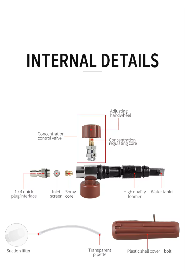* Uso multiplo: lavaggio auto, moto, pavimenti, finestre, vialetti, tetti, rivestimenti esterni e così via. Può essere collegata direttamente al tubo della pistola dell'idropulitrice.