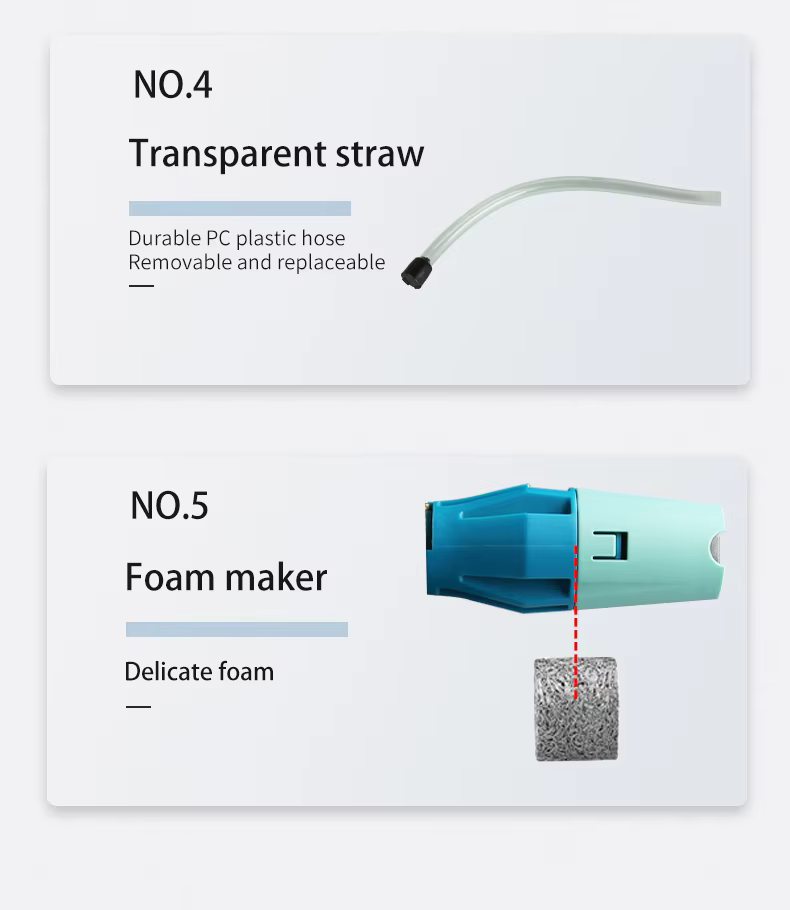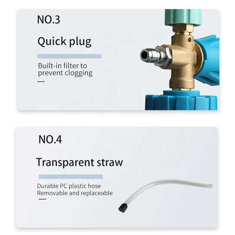 זווית קצף ניתנת להתאמה, ריכוז קצף ניתן להתאמה, חיבור מהיר, מקשורת שקופה, יוצר קצף