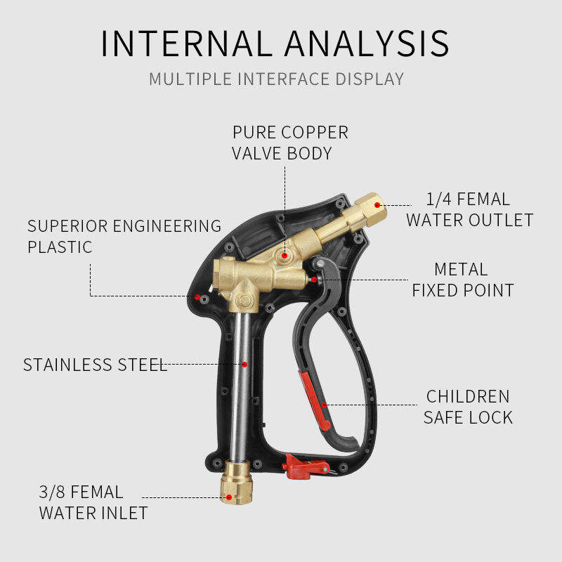 אקדח זריקה של מים בלחץ גבוה SPS לניקוי רכב, אקדח סプレー קצר, אביזר למדיח רכב בלחץ