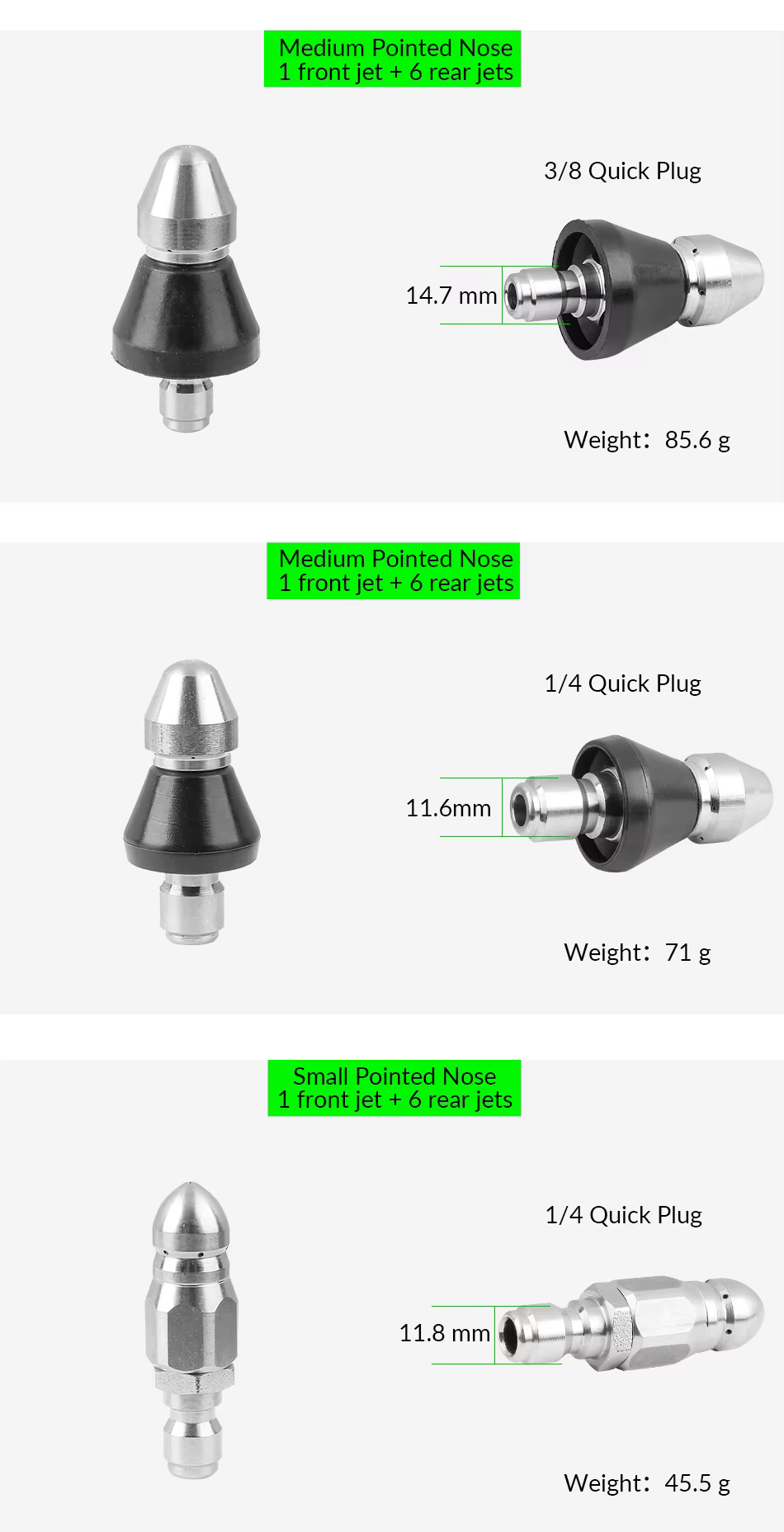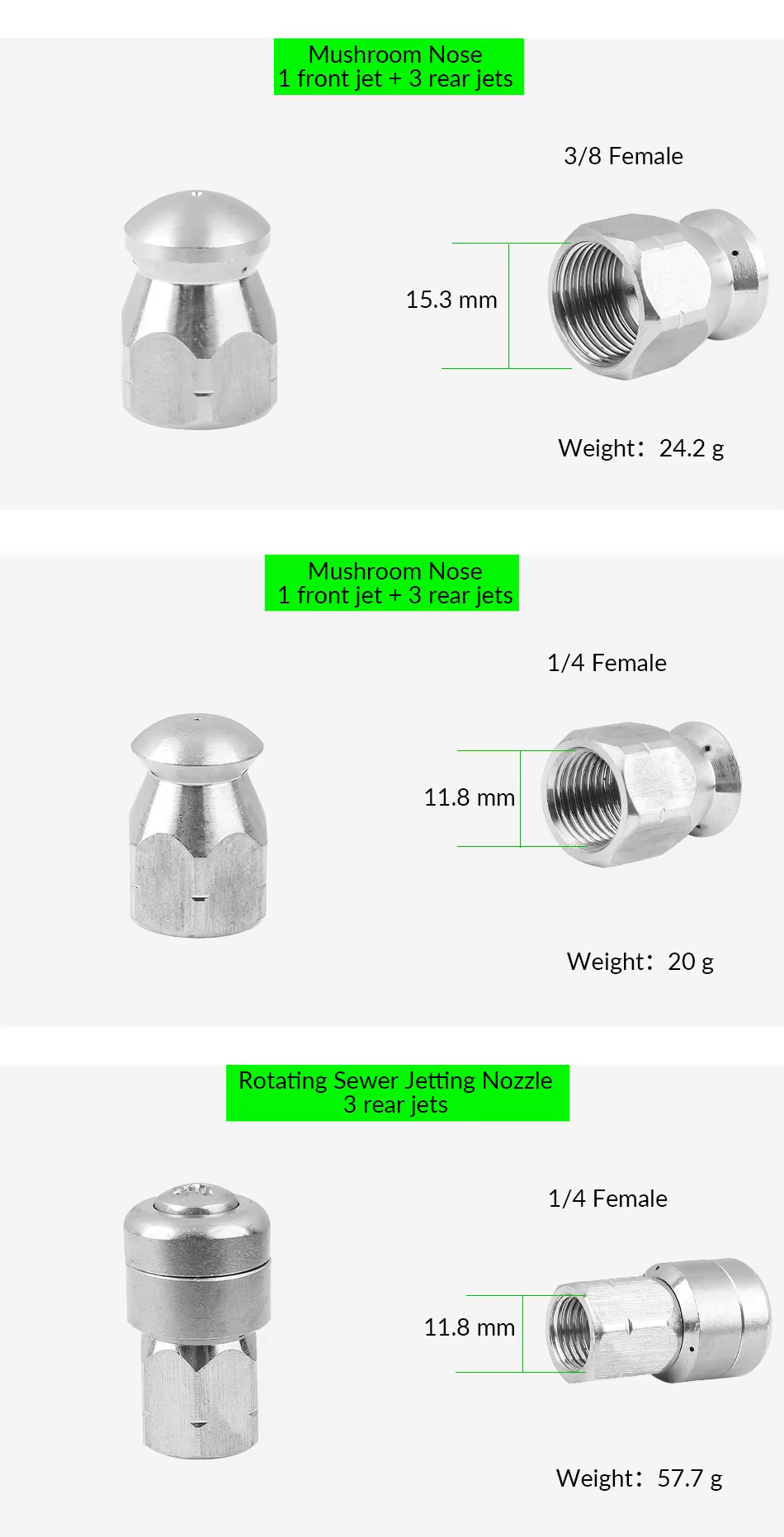 | 製品名 | 下水道ジェットノズルセット | 材質 | 304 ステンレス鋼、銅 |