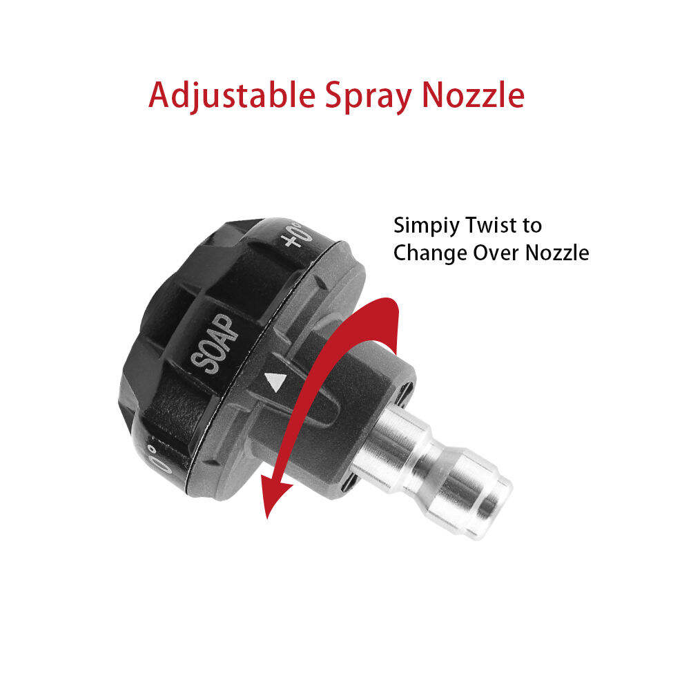 이 6-in-1 노즐은 표준 1/4인치 퀵 커넥트 방식입니다. 최대 작동 압력은 4000 PSI입니다. 구매 전 제품 사양을 반드시 확인하십시오.