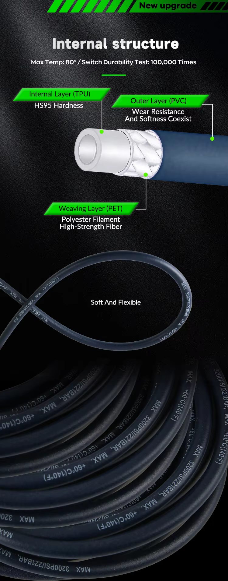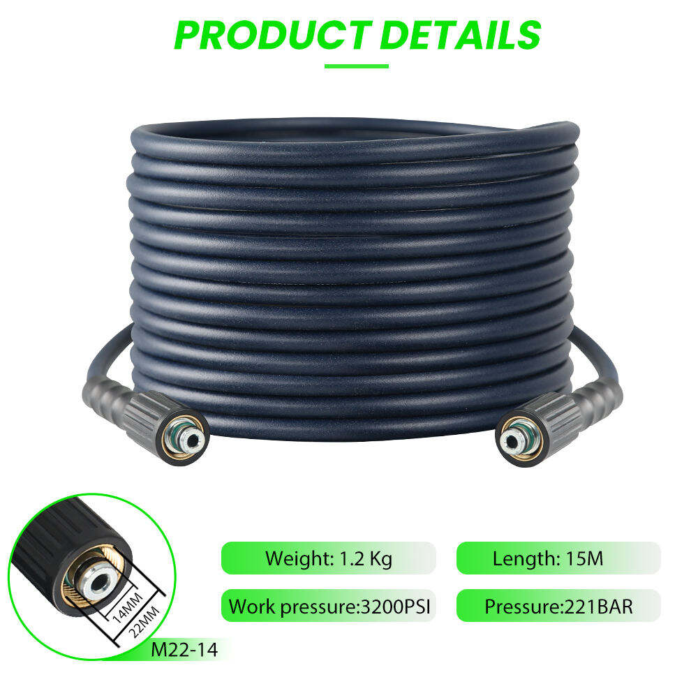 SPS 3600PSI Хүнд даацын 10М Уян зуурасны Усны Шланг, Төмөр М22-14/15 Залгаас бүхий, Машин Зайлуулагч Шланг