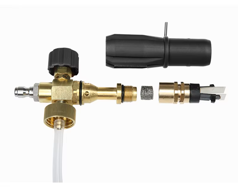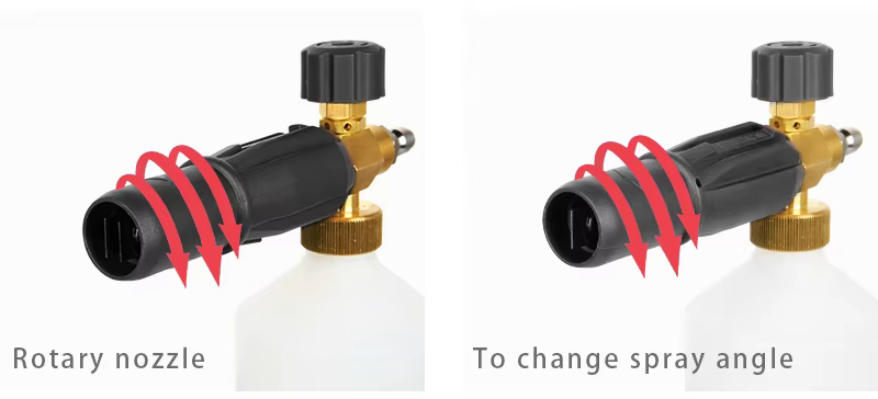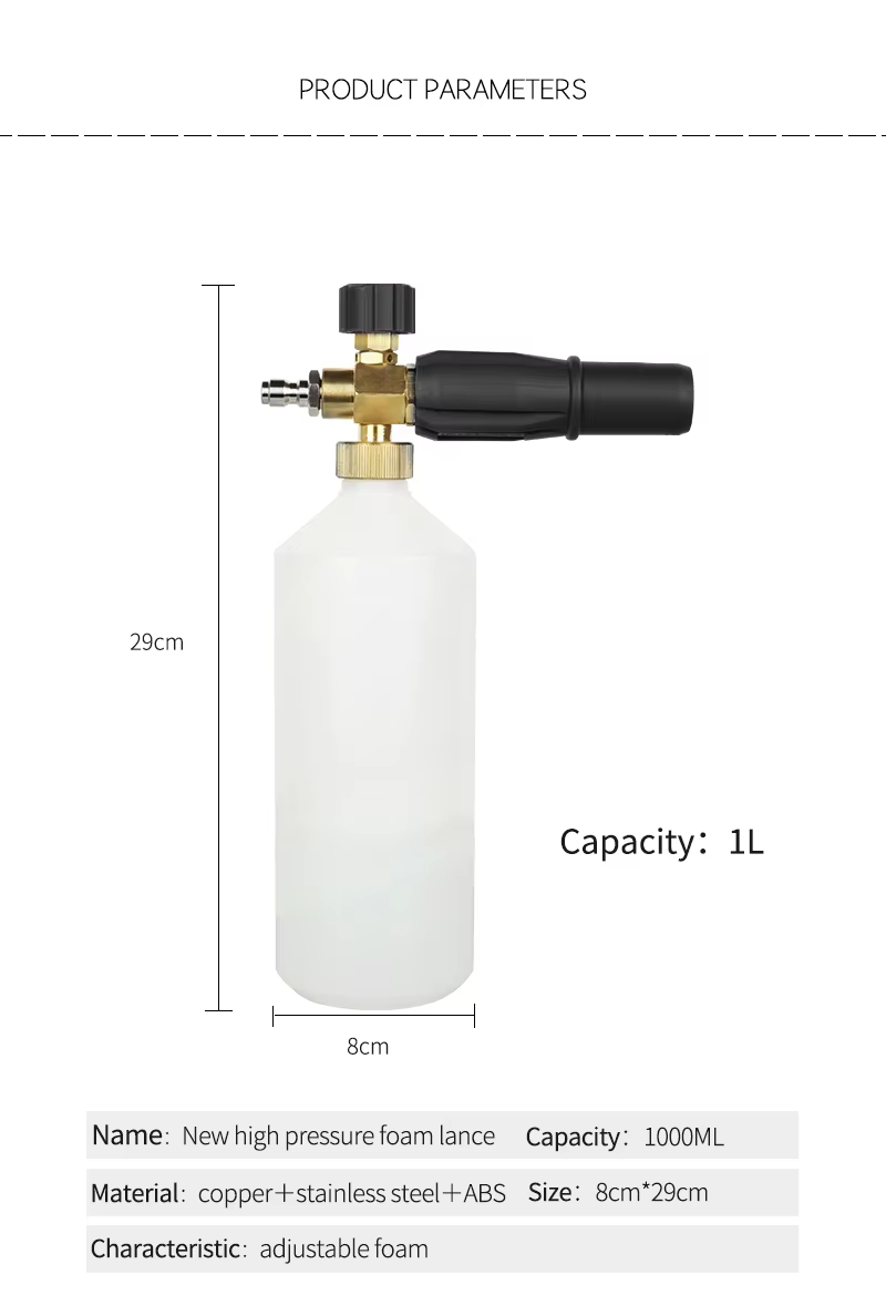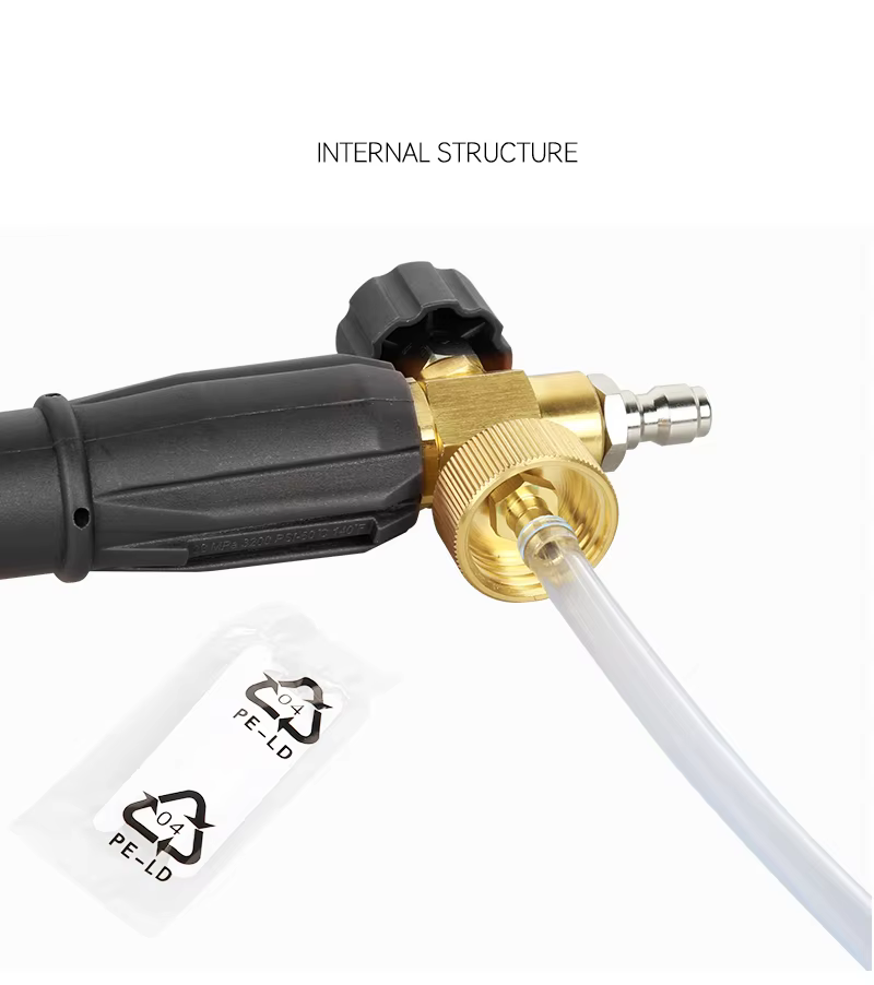 Trykkområde: 100 bar ~ 220 bar (1400 psi ~ 3200 psi), fungerer med både hjemmebruk og profesjonelle trykksprøyter, hovedsakelig beregnet for hjemmebruk.