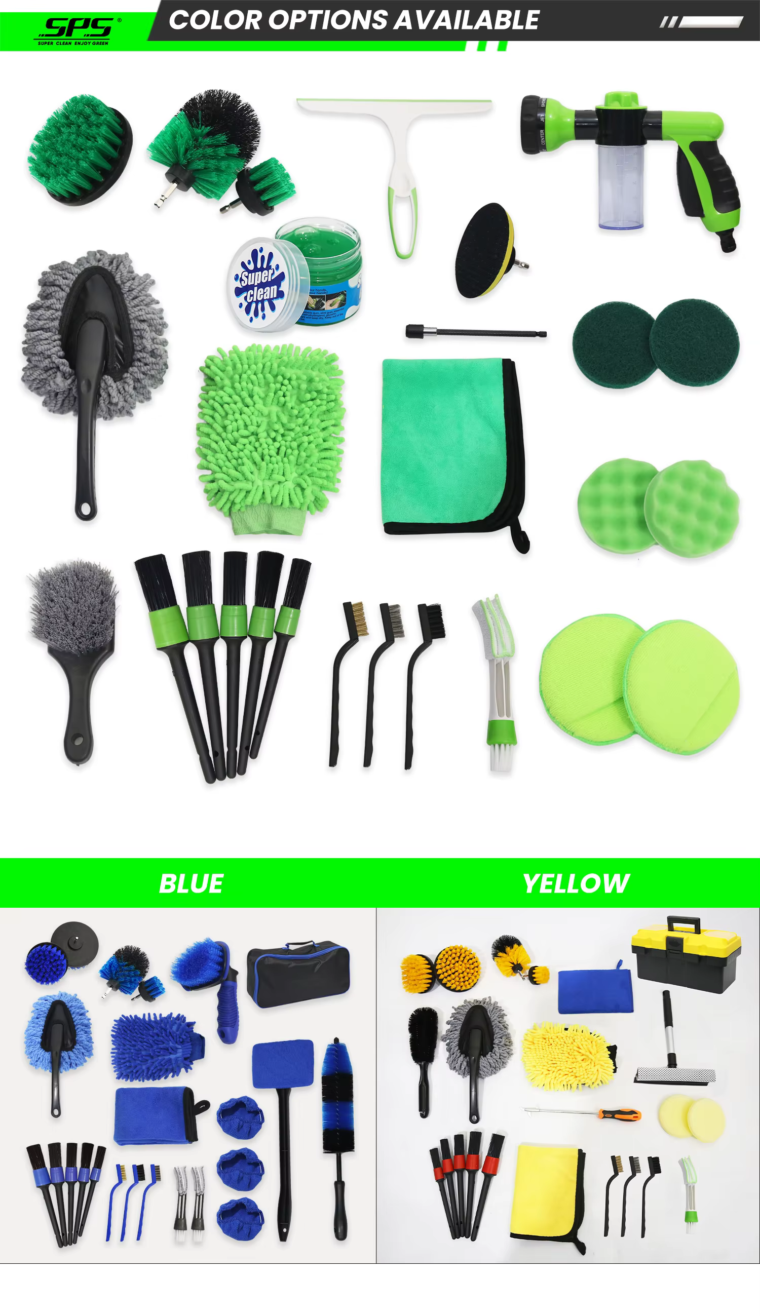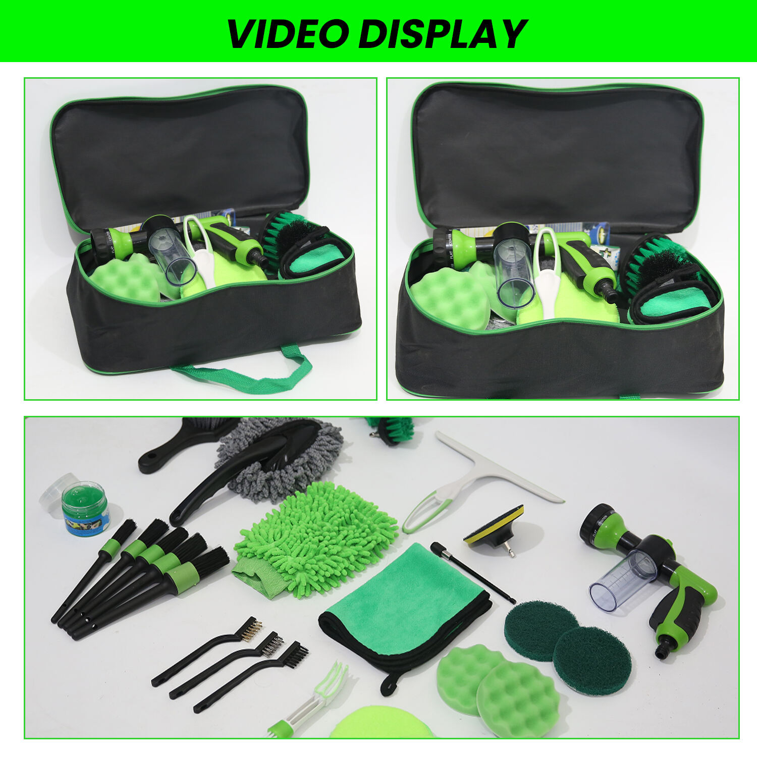 SPS OEM 34-delers bilsprettbørstesett, autovaskborst med borstetørrkåpe, felgbørstesett, detaljsprettverktøy for bil