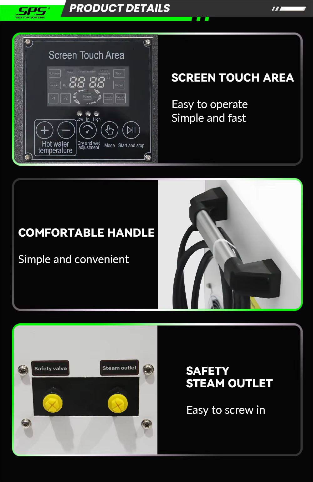 máquina de limpeza a vapor elétrica 220V de alta temperatura Remoção de graxa pesada Lavagem com água quente Equipamento de lavagem a vapor seco e úmido para carros