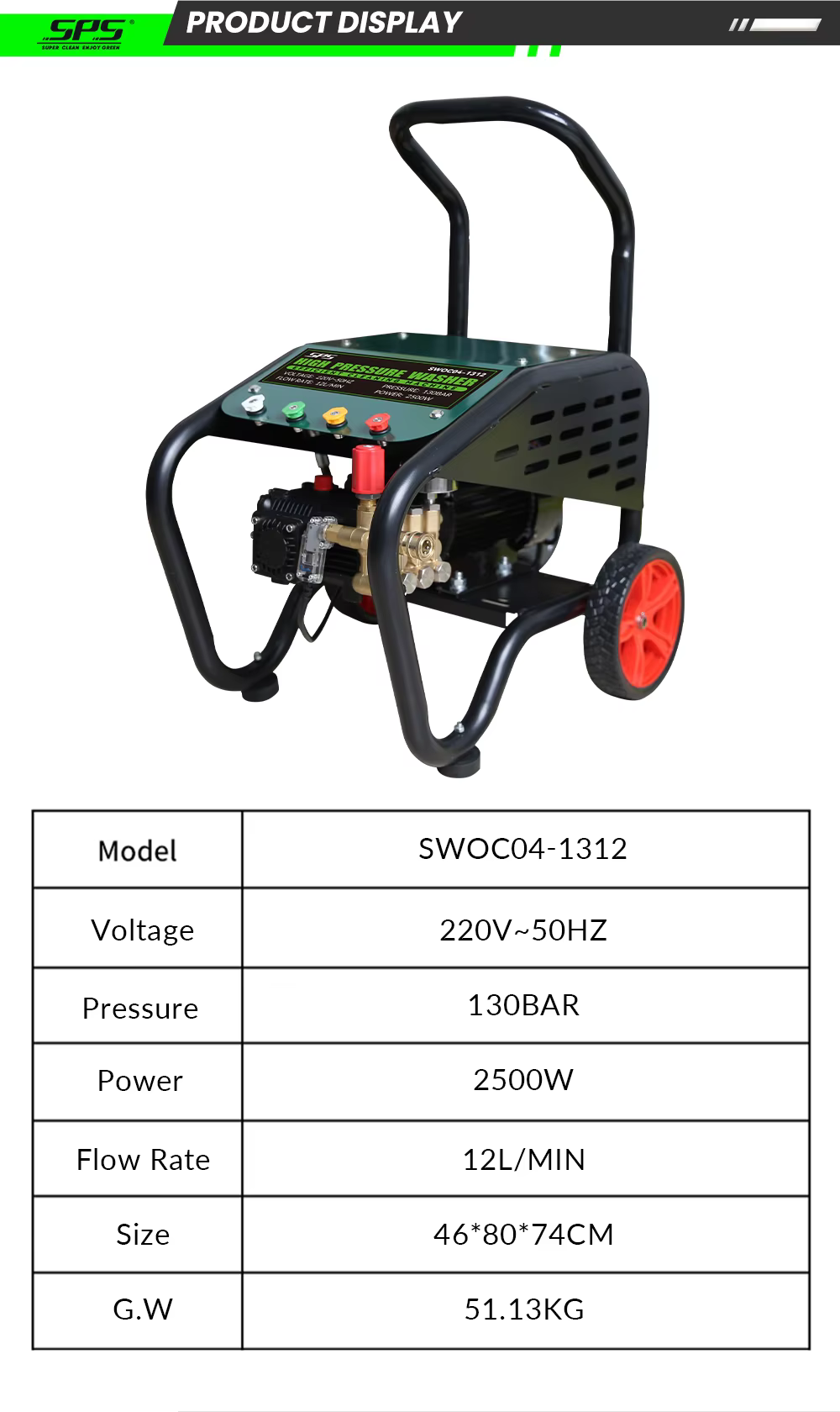 máquina de Limpeza Elétrica de Alta Pressão 2500w 130Bar Máquina Elétrica Comercial para Lavagem de Carros com Jato de Água