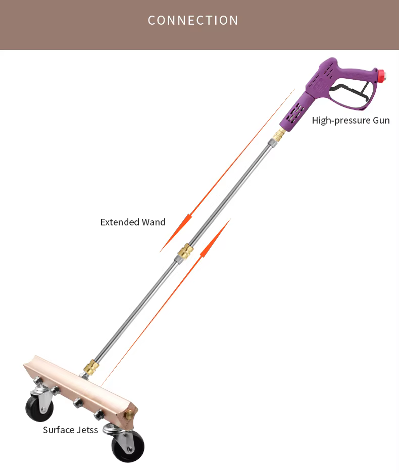 * O Pacote Inclui: ●1 x limpador de superfície para lavadora de alta pressão ●2 x haste prolongadora reta para lavadora de alta pressão de 15 polegadas