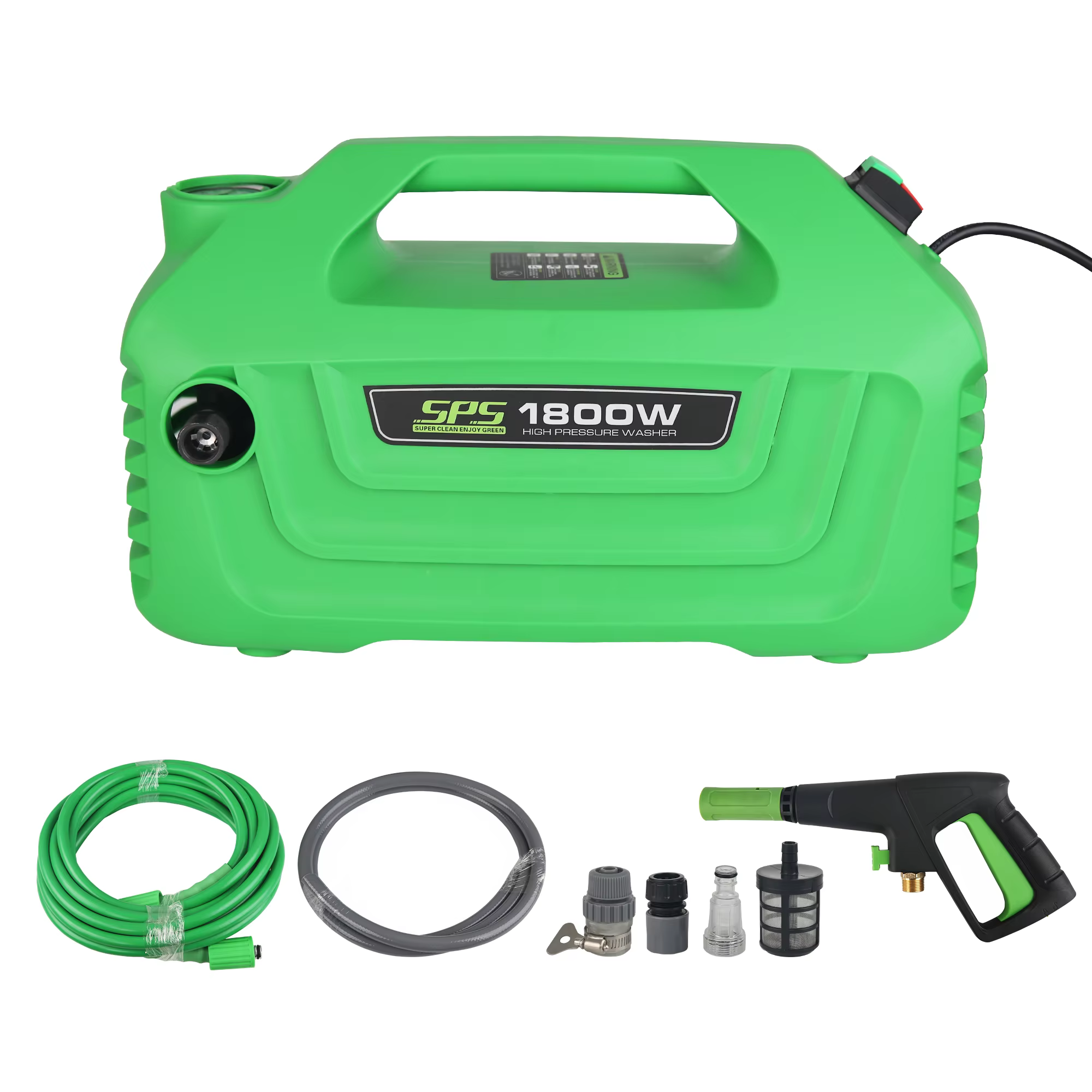 Bomba de Pressão de Água Profissional SPS para Lavagem de Carros 100Bar 1800W Limpeza de Alta Pressão Motor de Indução de Cobre de Qualidade Elétrico 220V Jato para Lavagem de Carros