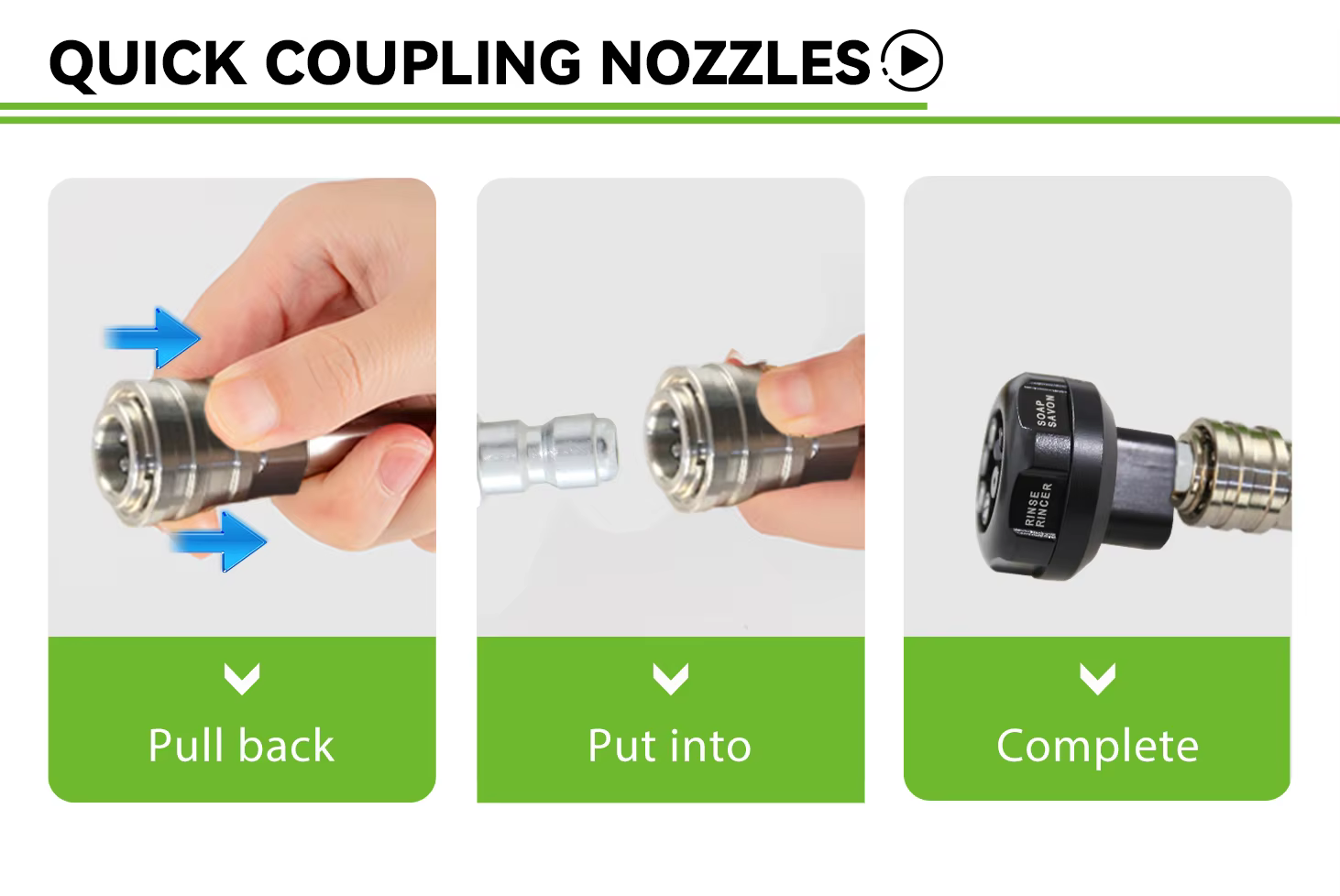 | Рабочее давление | 3200PSI | Угол Опрыскивания | 0°, 15°, 25°, 40°, Мыло |