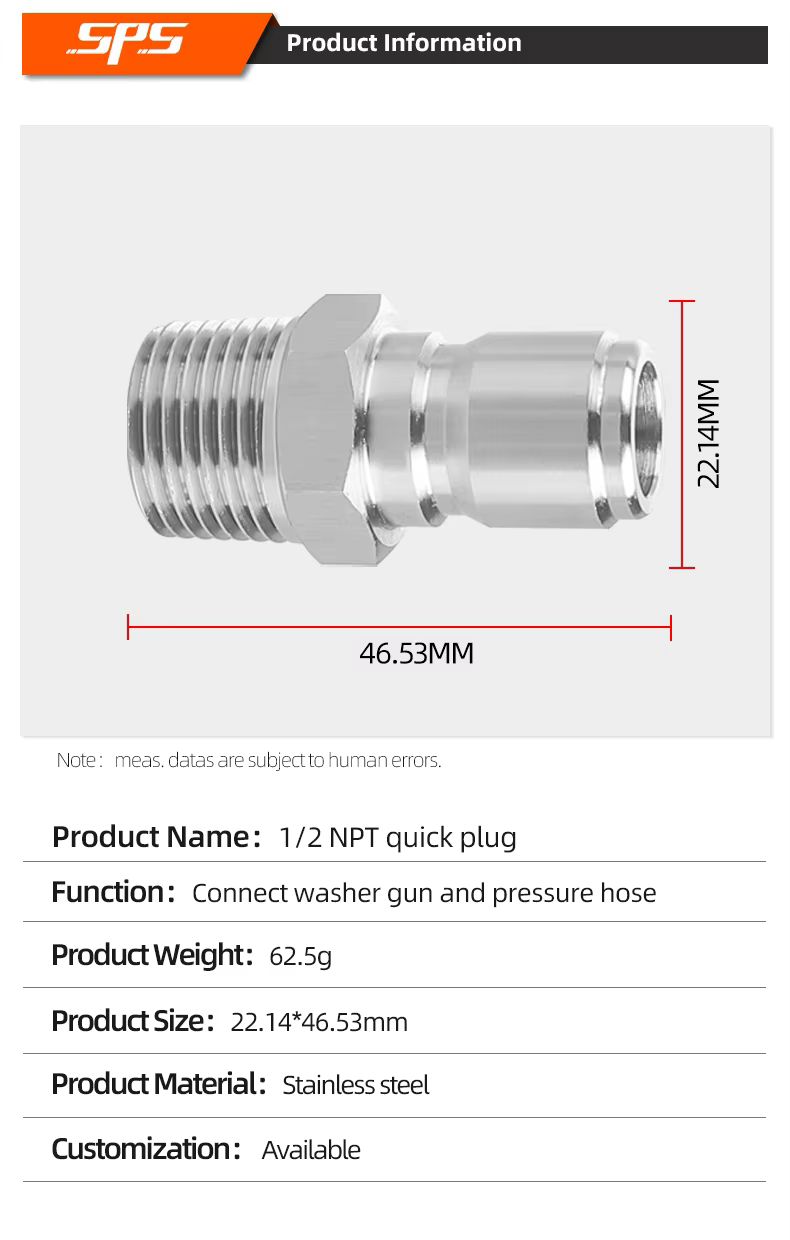 Быстроразъемное соединение SPS 1/2 дюйма NPT, быстросъемная муфта из нержавеющей стали, фитинг для мойки высокого давления, быстрое соединение
