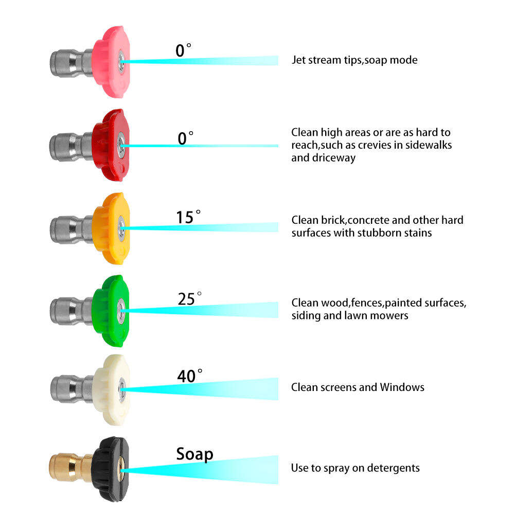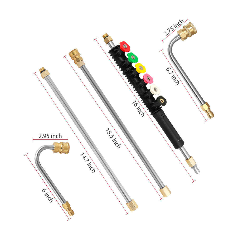 Den raka staven har ett handtag som är slipfritt och levereras med 6 munstyckeshållare för att förhindra förlust. Den kan bytas mot olika munstycken efter behov; hållarna hjälper dig att bibehålla stabiliteten i högtrycksskärmstaven, vilket gör att du blir nöjd och kan arbeta mer effektivt i olika situationer.