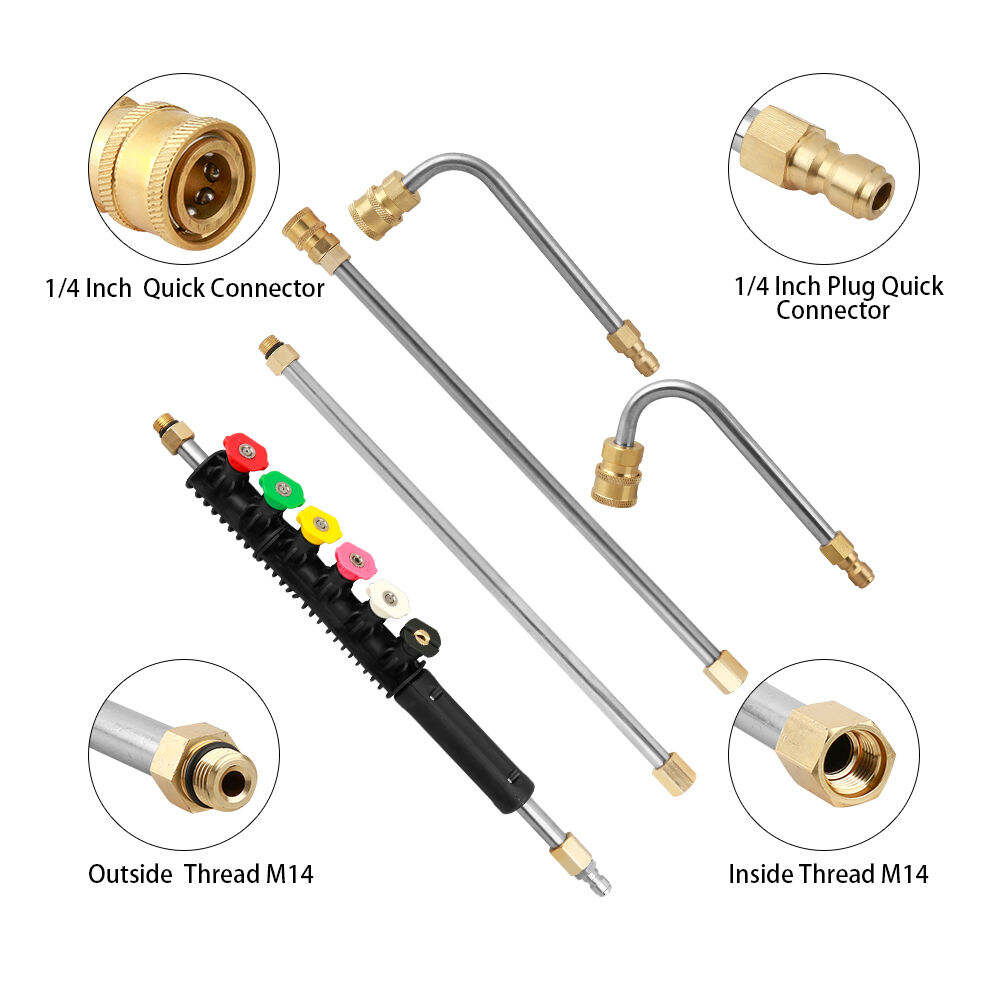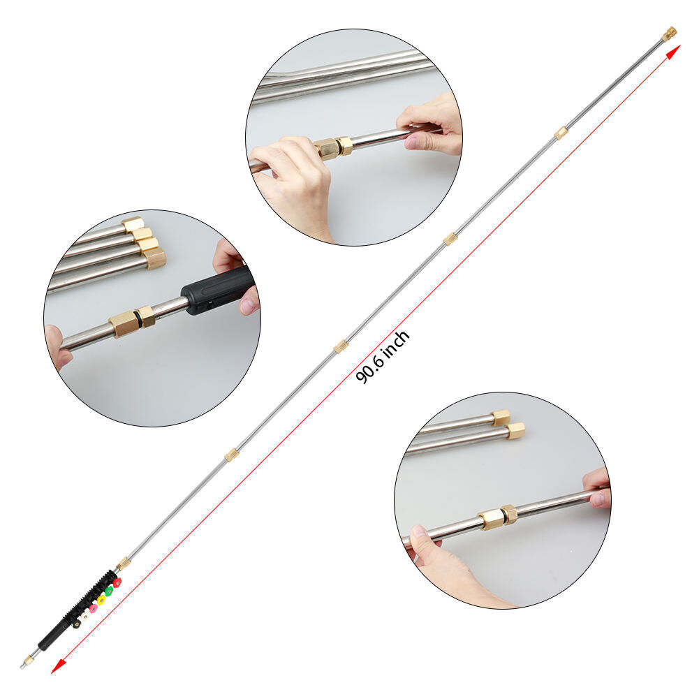 Förlängningsstavarna till högtryckstvättarna är tillverkade av slitstark rostfritt stål med messingbeslag. Hög tryckmotstånd, korrosionsbeständig, deformationstål, lång livslängd.