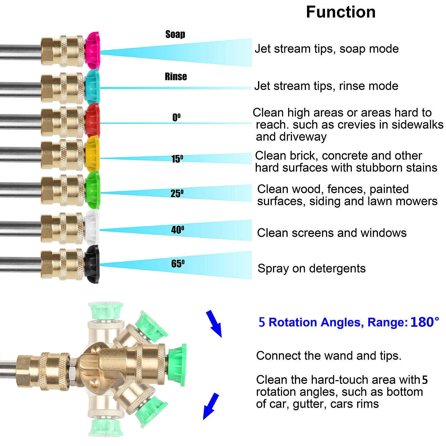 -Olika vinklar på munstycken uppfyller dina behov i olika situationer, till exempel vattning av blommor och växter, bilvatten, tvätt av staket, takvatten, och gör det enkelt att snabbt och enkelt rengöra svåråtkomliga områden.