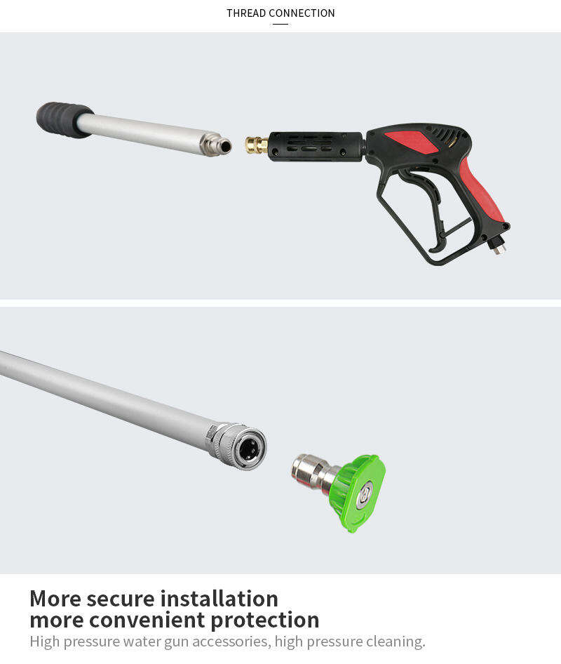 ★Användning: ●Designad för högtryckssprutor med spraypistoler, är den idealisk att använda i diskhon, borstar, chassirengörare eller rengöringsborstar, och är utmärkt för utomhusrengöring såsom fasader, uppfarter, gångvägar, terrasser, tak, takfoder, panel, bilar etc. Du kan rengöra ditt hus snabbare utan att behöva klättra på en stege.