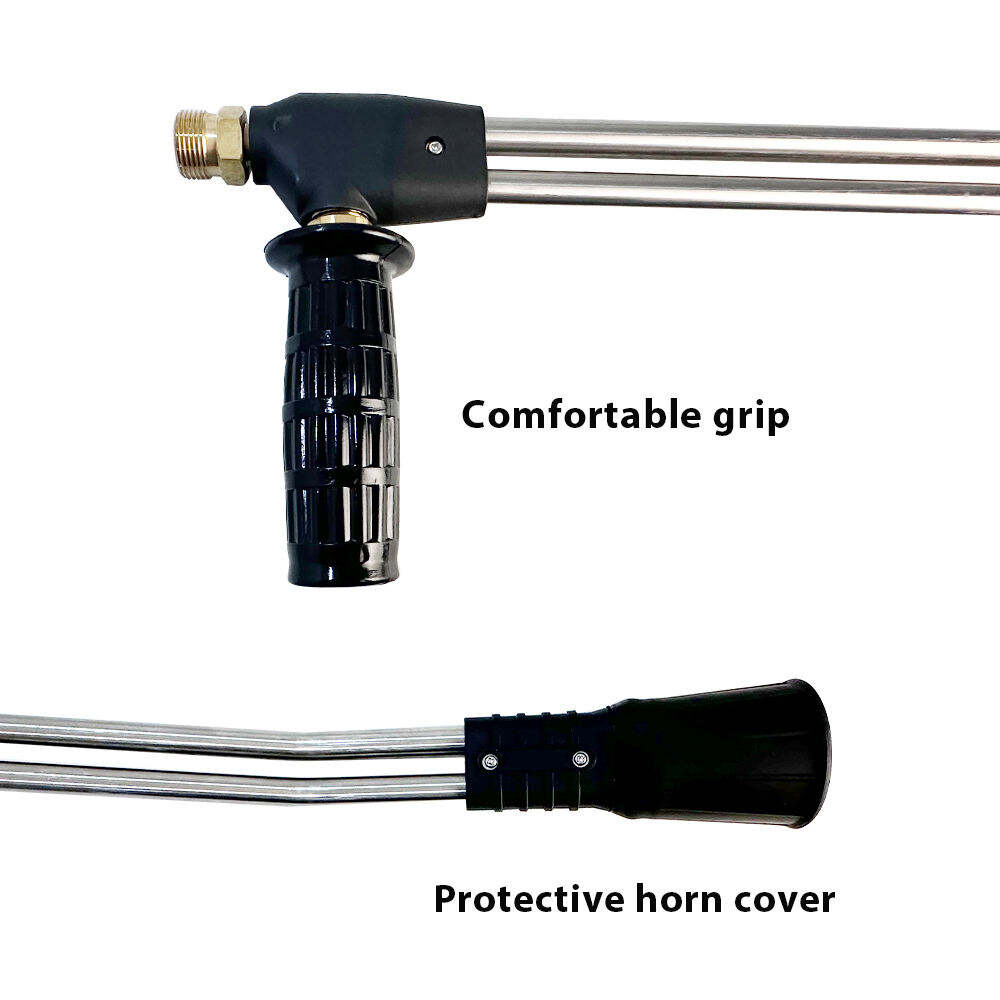 சரிசெய்யக்கூடிய இரட்டை ராட் பக்க கைப்பிடி நெகிழ்வான செயல்பாட்டை எளிதாக்குகிறது 1, நோசில் வடிவமைப்பு: பாதுகாப்பு கொம்பு மூடி 2 பிசி நோசில் பொருத்தம் அணைக்கப்படும், அழிக்கப்படாதது, துருப்பிடிக்காதது மற்றும் முதுமையாக்கத்திற்கு எதிரானது 2, வசதியான கிரிப்: அதிக வெப்ப எதிர்ப்பு, துருப்பிடிக்காதது, துருப்பிடிக்காதது 3, ஸ்டெயின்லெஸ் ஸ்டீல் இரட்டை ராட்: வலுவான அழுத்த எதிர்ப்புடைய துருப்பிடிக்காத தடிமனான பொருள்
