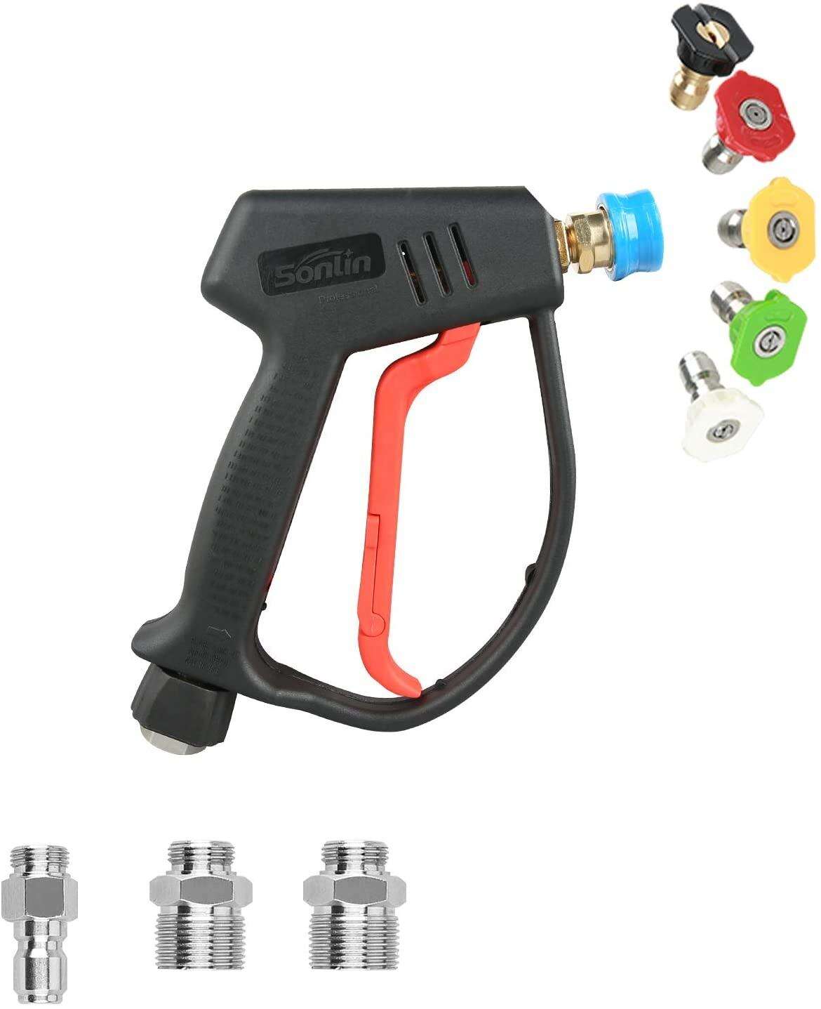 SPS 4000 PSI เครื่องฉีดน้ำแรงดันสูงประสิทธิภาพสูงสุด ปืนสั้นสำหรับล้างรถ อุปกรณ์อะไหล่พร้อมหัวฉีดพ่นน้ำ