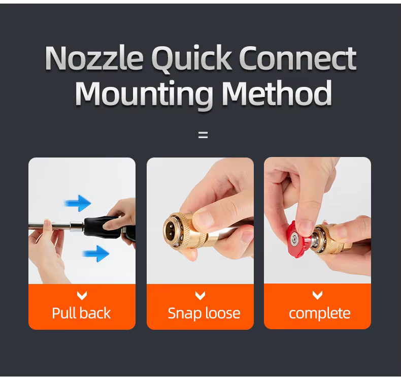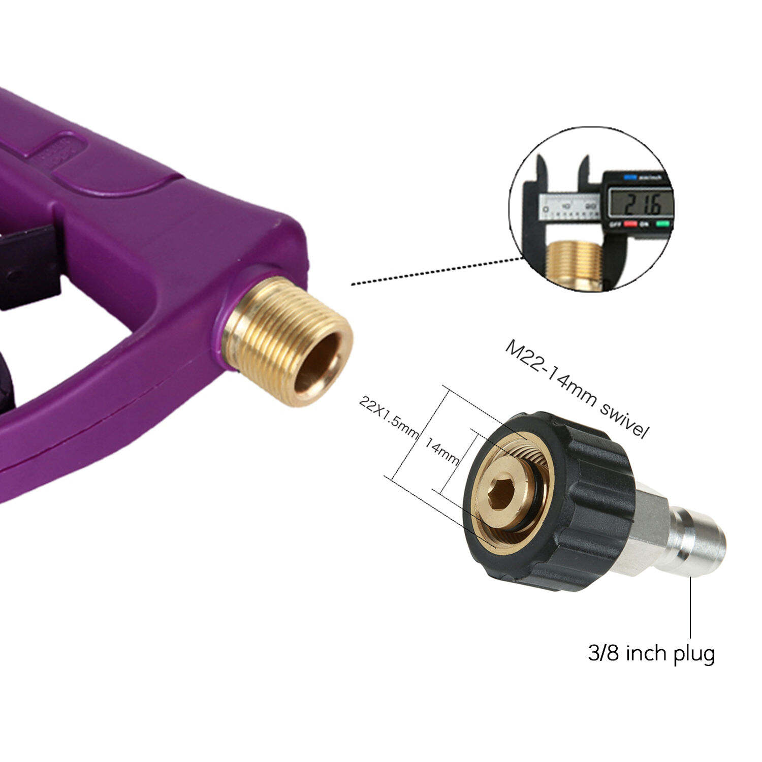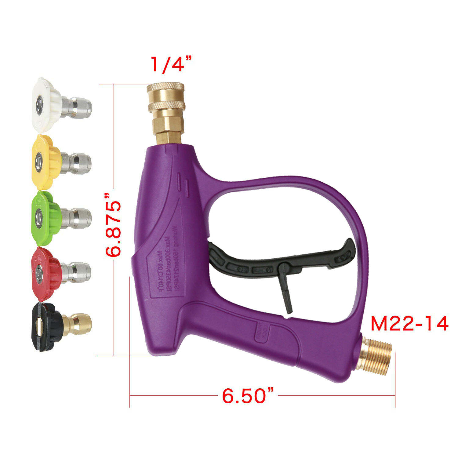 หัวปืนเครื่องฉีดน้ำแรงดันสูงเป็นข้อต่อเร็วขนาด 1/4 นิ้ว สามารถต่อหัวปลั๊ก M22 14 เกลียวหมุนได้ 3/8" เข้ากับปลายปืนได้ และใช้งานได้สะดวกยิ่งขึ้น