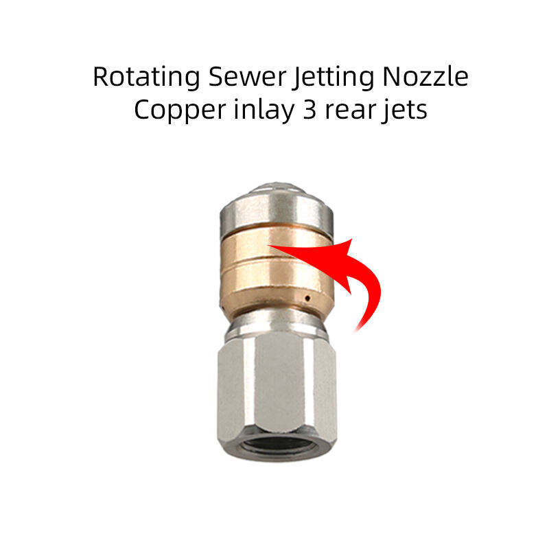 Сопло SPS 1/8 дюйма з обертанням для продування каналізації, нержавіюча сталь, мідне вставне сопло, 3 задніх струмені, прочищення трубопроводу, мийка під тиском