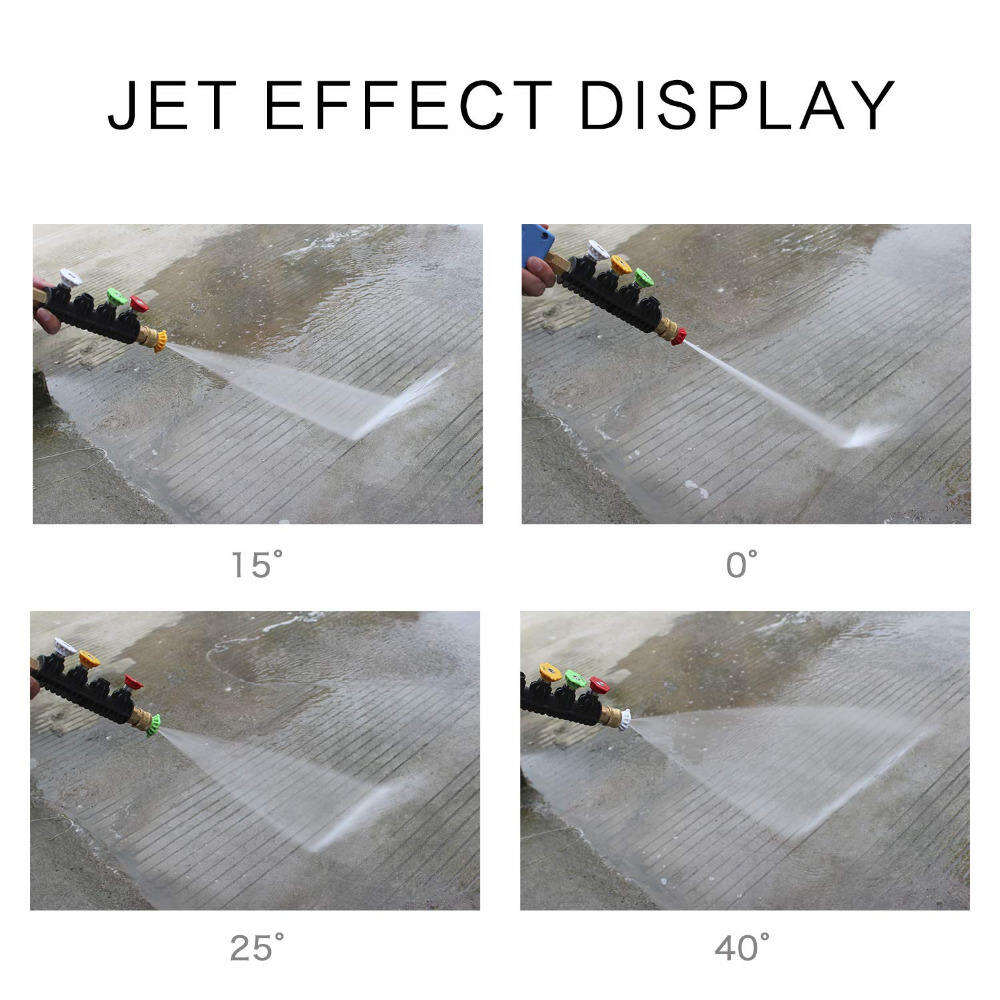 П'ять насадок для мийки під тиском задовольнять ваші потреби в різних ситуаціях, таких як полив квітів, миття автомобіля та очищення важкодоступних місць тощо. Будь ласка, оберіть відповідне сопло для різних завдань.