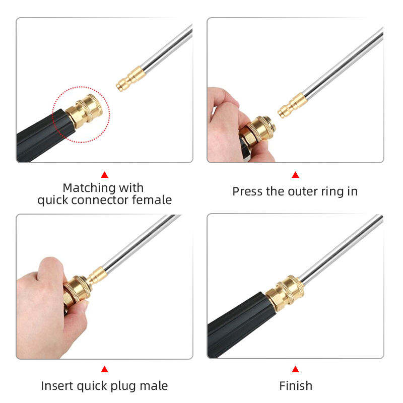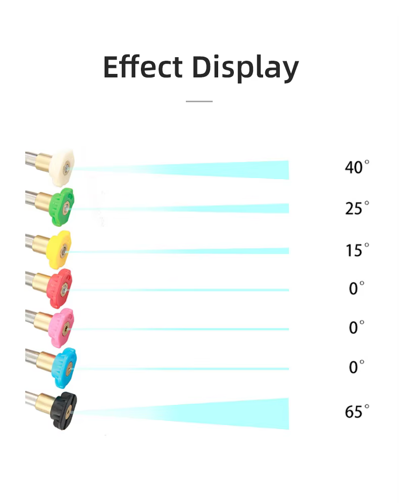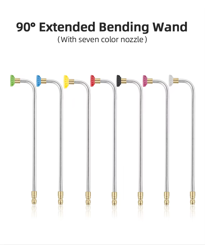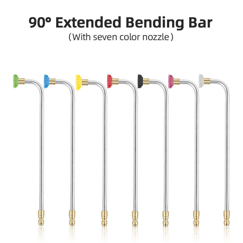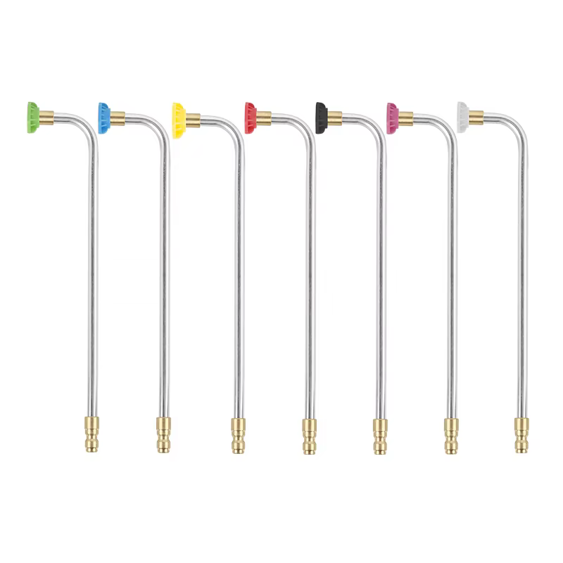 SPS 1/4" tez ulanadigan poydevorli po'latdan yasalgan 90 gradusli bosimli yuvish uchun uzaytirilgan dastovka aksessuarlari 7 xil rangdagi nozzllar bilan