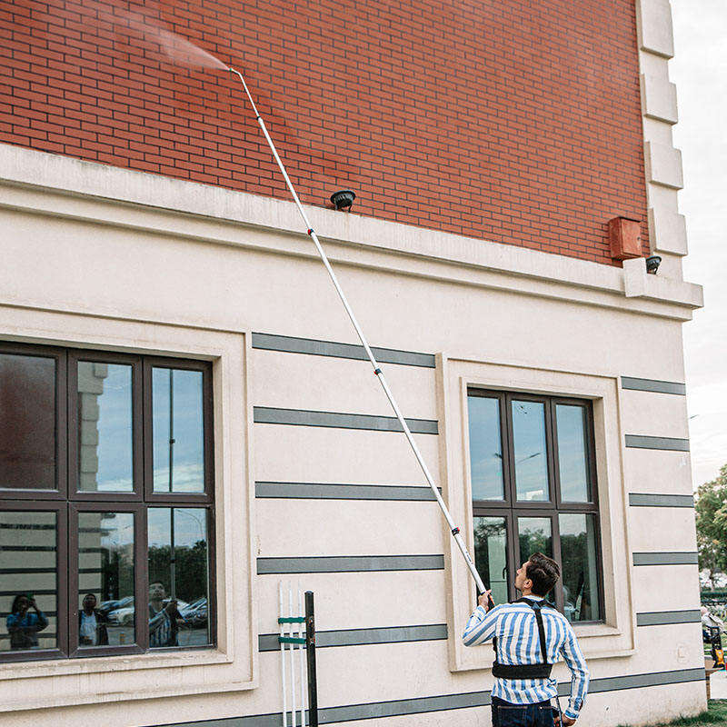 1. Teleskop tirning kerakli uzunligini sozlang, so'ngra barqaror natija olish uchun qulflang. Zinadan foydalanmasdan yuqori joylarni tozalashingiz mumkin. Soffitlar, fasad, devor panellari, ikkinchi qavat hamda gorizontlardan yerda turib osongina tozalashingiz mumkin.