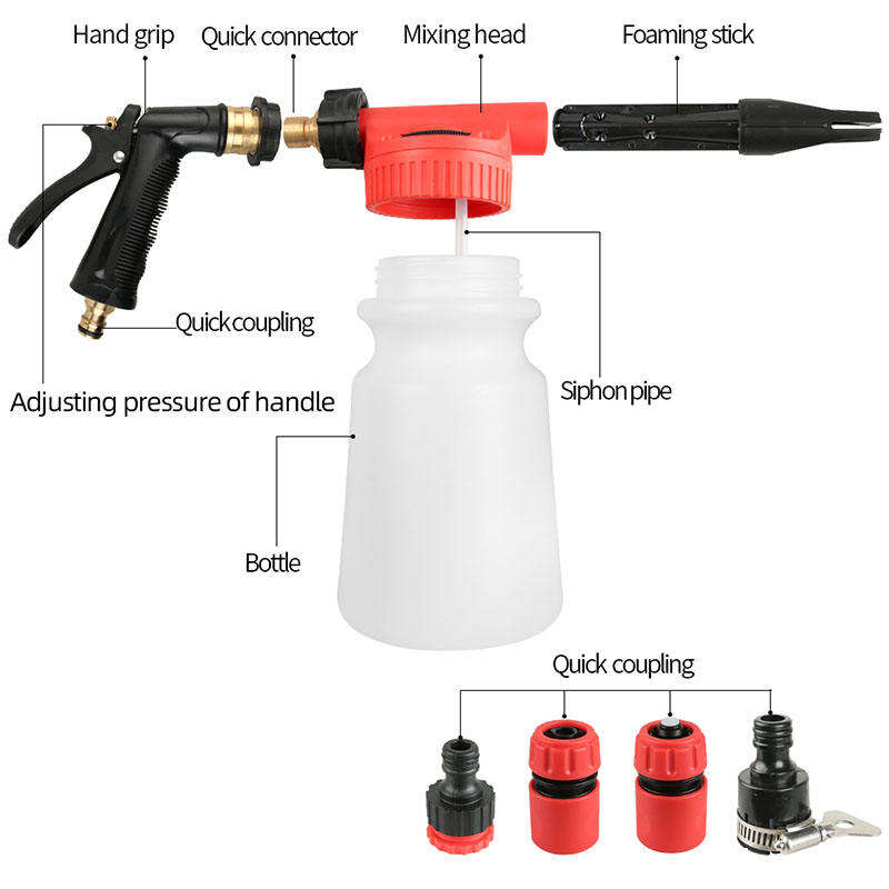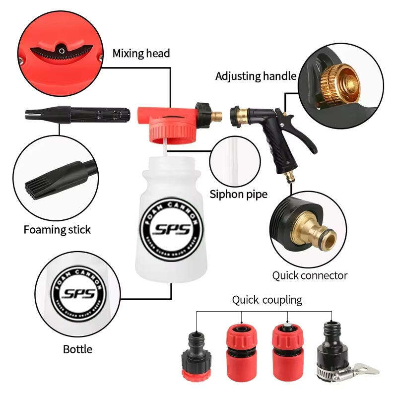 Súng phun bọt tuyết áp suất thấp SPS để vệ sinh xe hơi, vòi phun xà phòng rửa xe, pháo tạo bọt